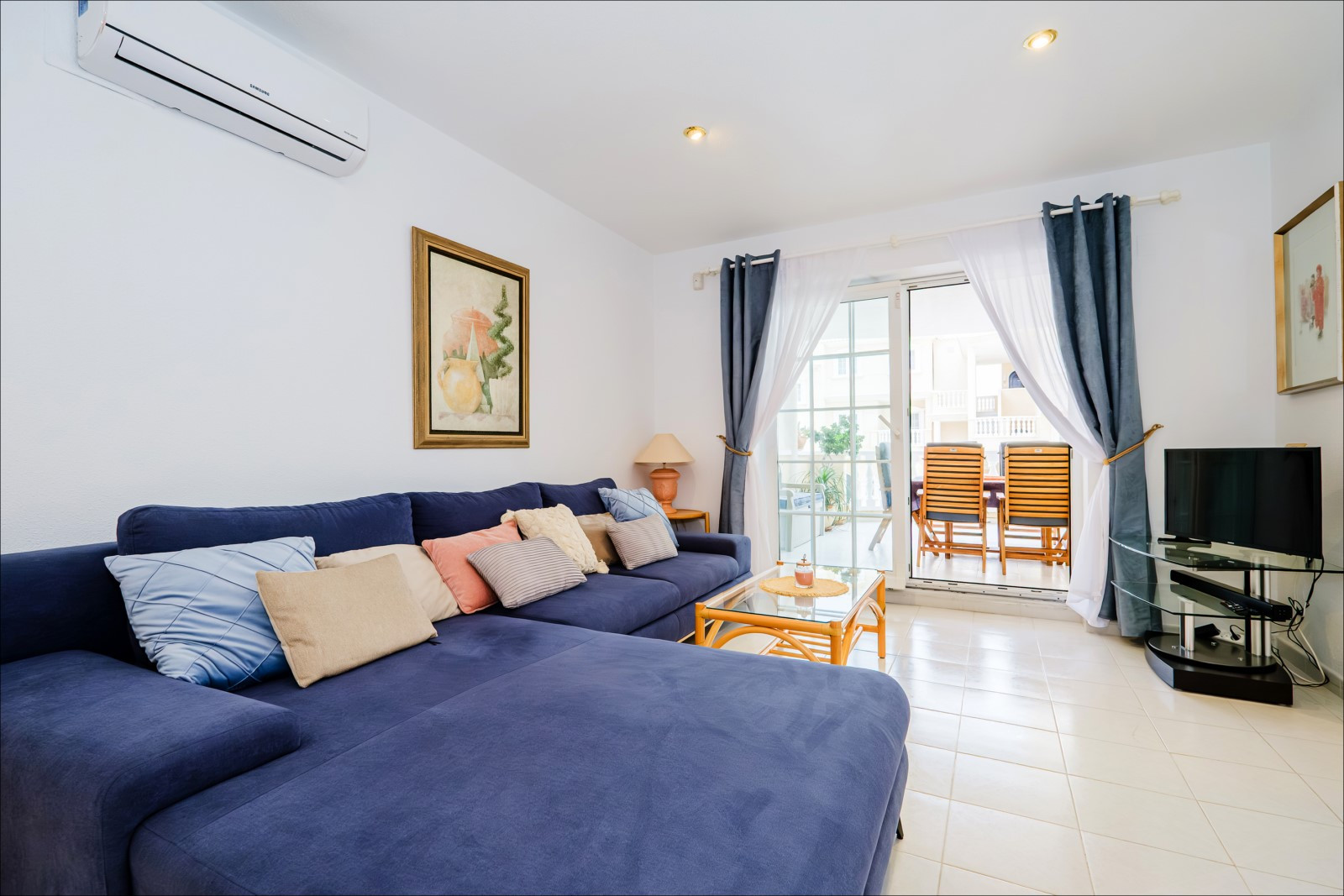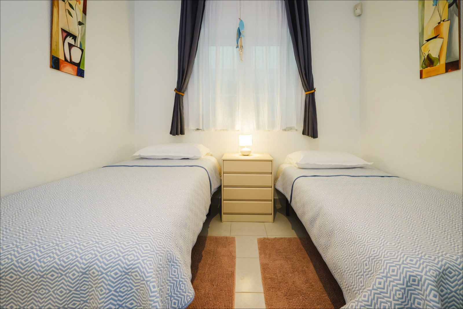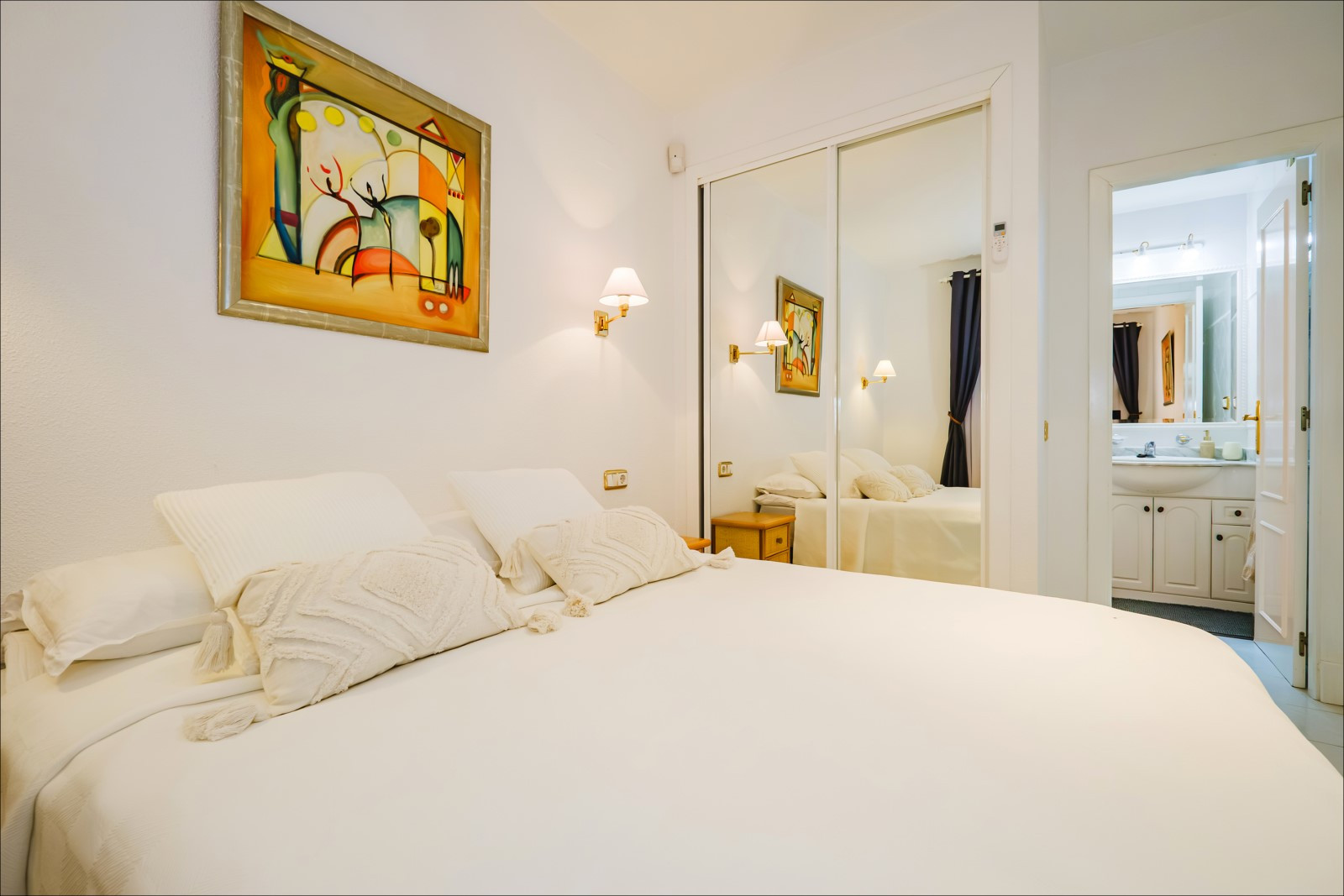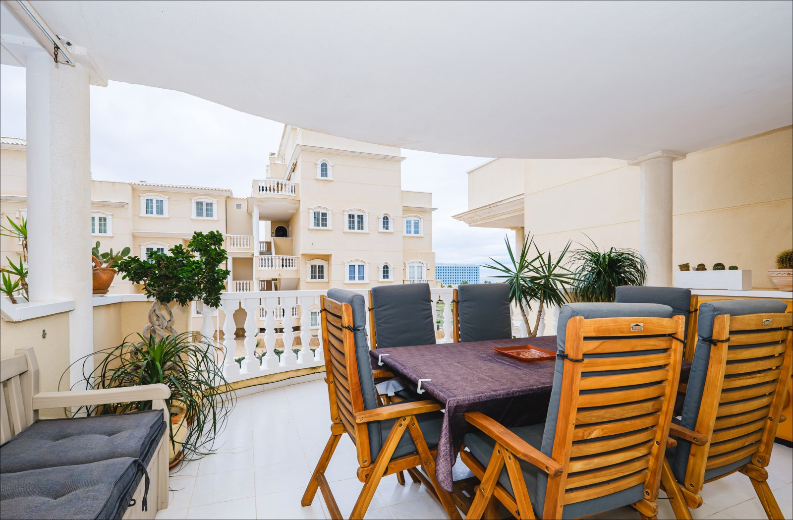 Se alquila un apartamento de dos habitaciones en un hermoso complejo cerca del mar y la playa. El apartamento de 93 m² consta de salón, dos dormitorios, cocina independiente, dos baños y balcón. Cuenta con todo lo necesario para una estancia cómoda y relajante: muebles, electrodomésticos (incluida lavavajillas y cafetera), vajilla, ropa de cama y toallas. Aire acondicionado central para calefacción y refrigeración. Televisión española, internet inalámbrico. En el balcón hay muebles de verano. El complejo cuenta con piscina. El mar y la playa El Moncayo están a 300 metros. Alojamiento: hasta 4 personas (¡sin mascotas!). Fumar solo está permitido en el balcón (¡multa de 200 euros en caso de incumplimiento!). Entrada en el apartamento de 15:00 a 19:00. Salida de 09:00 a 11:00. Por entrada o salida fuera del horario laboral de la empresa/oficina, en fines de semana y días festivos, se cobrará un cargo adicional de 20 euros. Horario de oficina: de lunes a viernes de 9:00 a 19:00, sábados de 10:00 a 15:00, domingos cerrado.