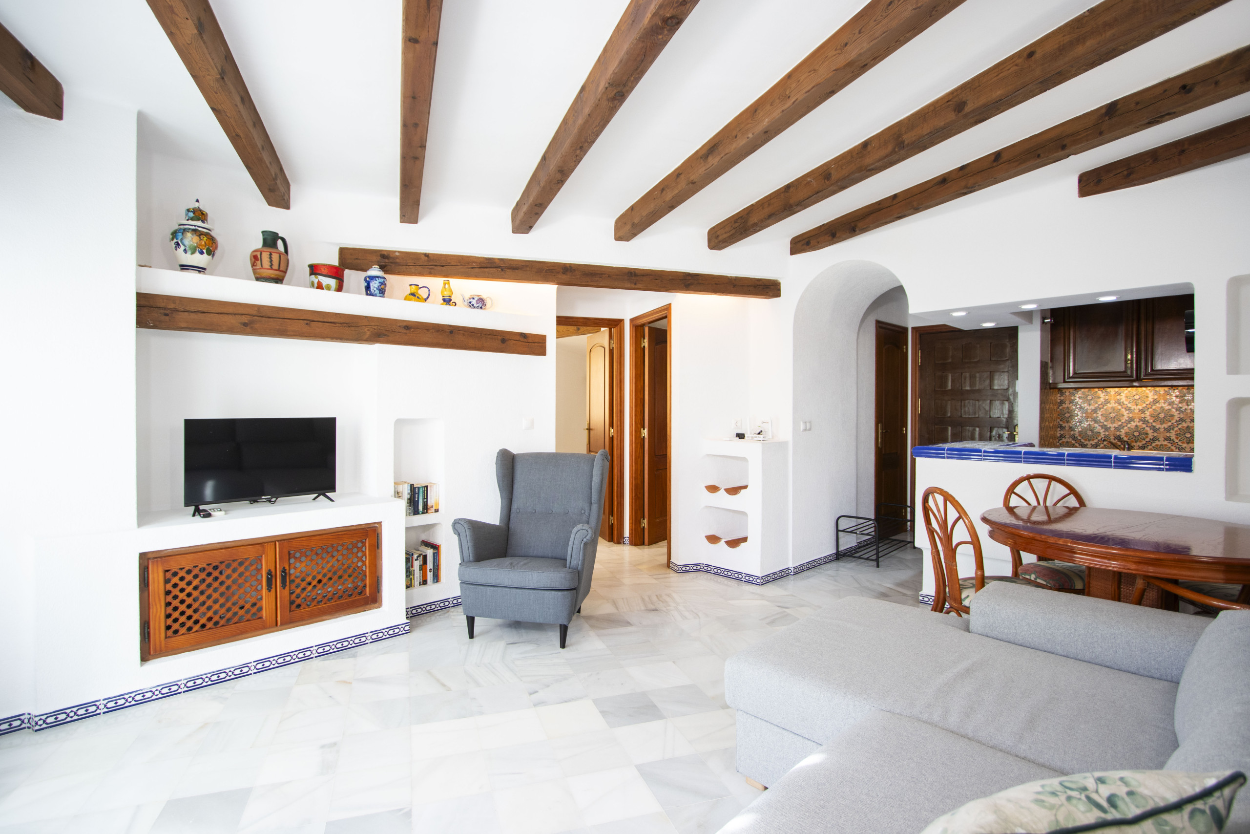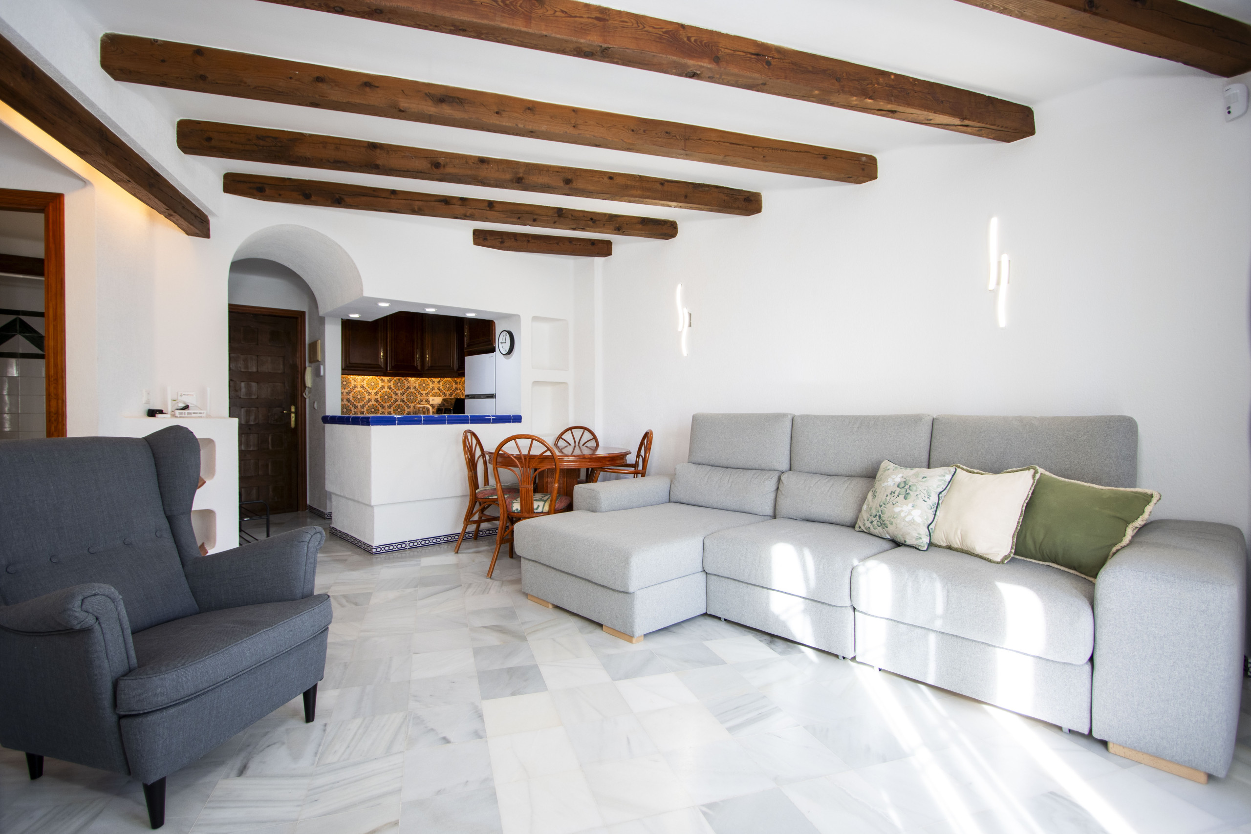 Ofrecemos en alquiler un apartamento de dos habitaciones en el complejo residencial "Aldea Del Mar" con piscinas y zona verde de descanso. El apartamento de 63 m2 consta de una amplia sala de estar, dos dormitorios, un baño, cocina y una gran terraza. El apartamento está equipado con todo lo necesario para unas vacaciones cómodas y relajantes: muebles, electrodomésticos (incluida cafetera), ropa de cama y toallas. Aire acondicionado. TV española, internet inalámbrico. El complejo residencial cuenta con una hermosa zona verde. El acceso a la piscina es DE PAGO. La zona cuenta con una infraestructura bien desarrollada. El supermercado "Consum" está a 250 metros. El bar más cercano está a solo 150 metros, y hay muchos otros restaurantes a poca distancia. El mar y la playa popular de Los Locos están a 300 metros. Opciones de alojamiento: hasta 4 personas (¡sin animales!). ¡Fumar solo está permitido en la terraza!