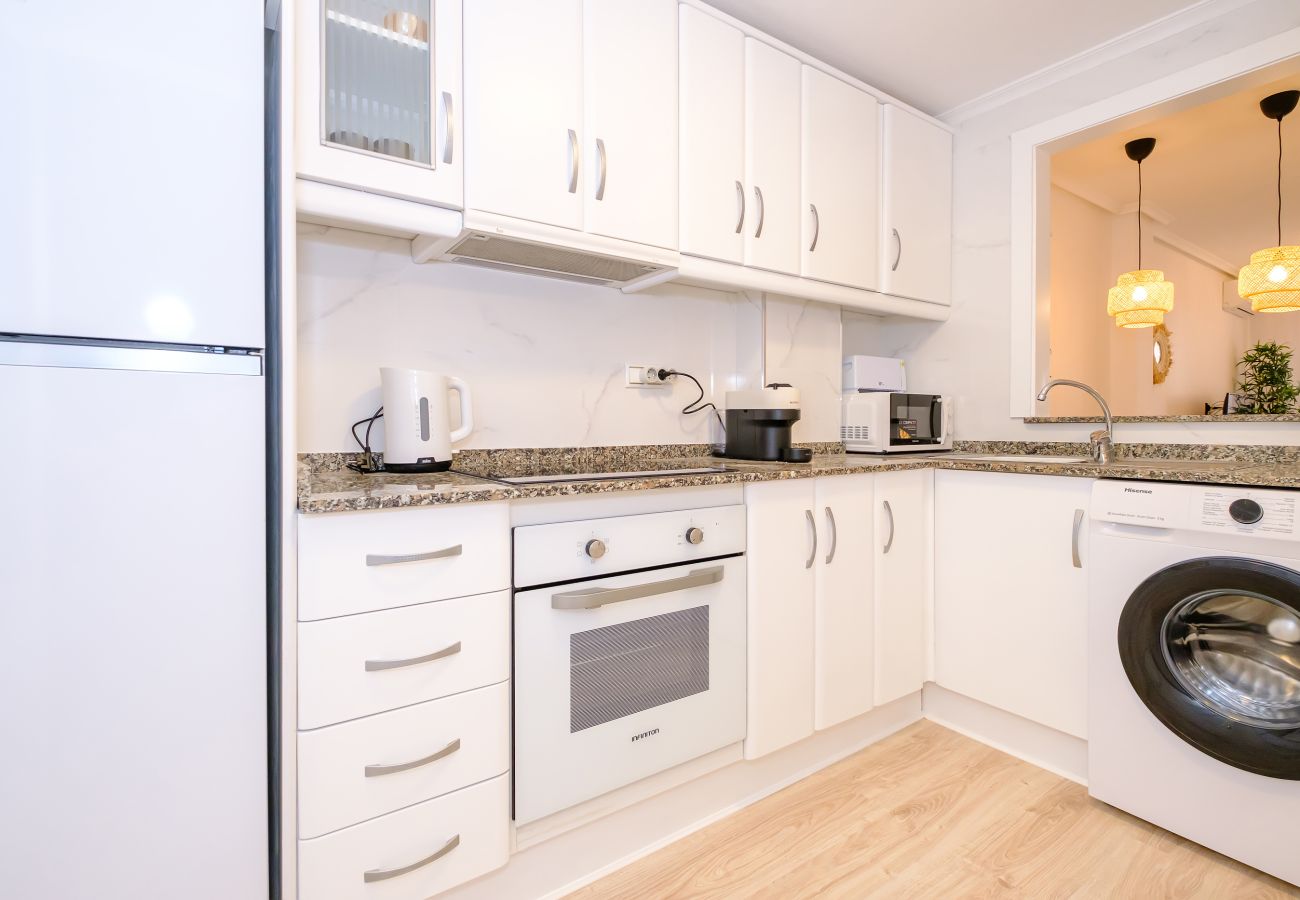 ¡Ofrecemos en alquiler un apartamento acogedor y luminoso de una habitación en un área con infraestructura desarrollada ya poca distancia del mar y dos playas! El apartamento de 66 m2 consta de una sala de estar, un dormitorio, una cocina estilo francés, un baño, un balcón y un pequeño patio. El apartamento tiene todo lo necesario para una estadía cómoda y recreativa: muebles nuevos, electrodomésticos (incluida una cafetera), vajilla, sábanas y toallas. El salón está equipado con aire acondicionado. Hay muebles de exterior en el balcón y en el patio. TV española, Internet inalámbrico. La zona cuenta con una infraestructura bien desarrollada. A los supermercados "Consum" y "Masymas" 200 metros, a la farmacia las 24 horas 250 metros. En un radio de doscientos metros hay varios bares y restaurantes. ¡El mar y las populares playas de la ciudad de Del Cura y Los Locos están a solo 300 metros! Opción de alojamiento: hasta tres personas (¡estrictamente sin animales!). ¡Solo se permite fumar en el balcón o en el patio!