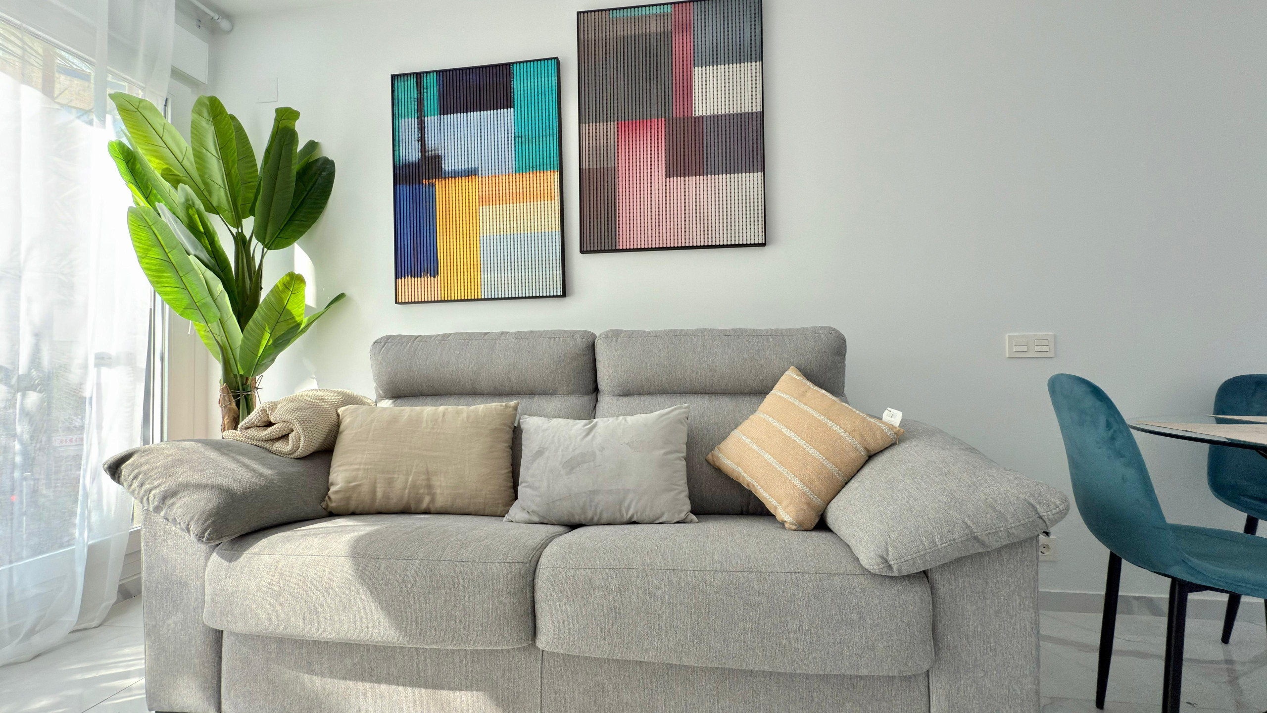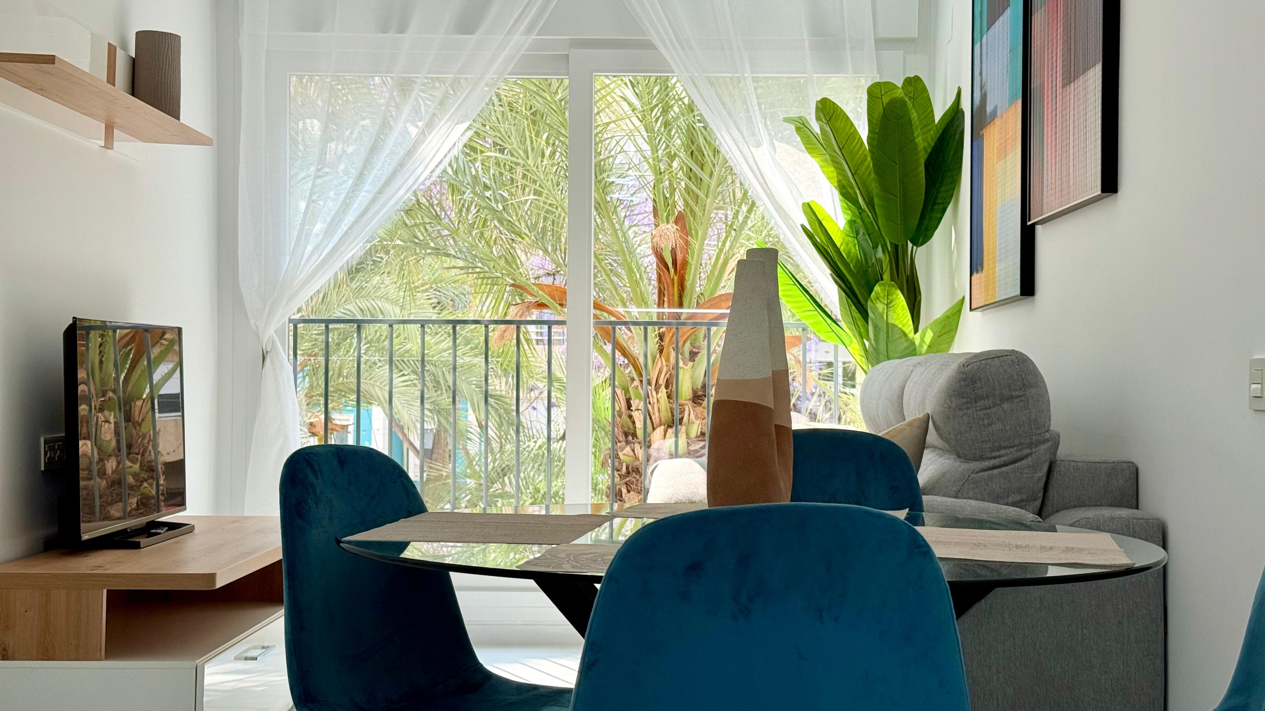 Dispone de lavadora, plancha, acceso internet (wifi), secador, zona infantil, piscina comunitaria, 1 Televisor.