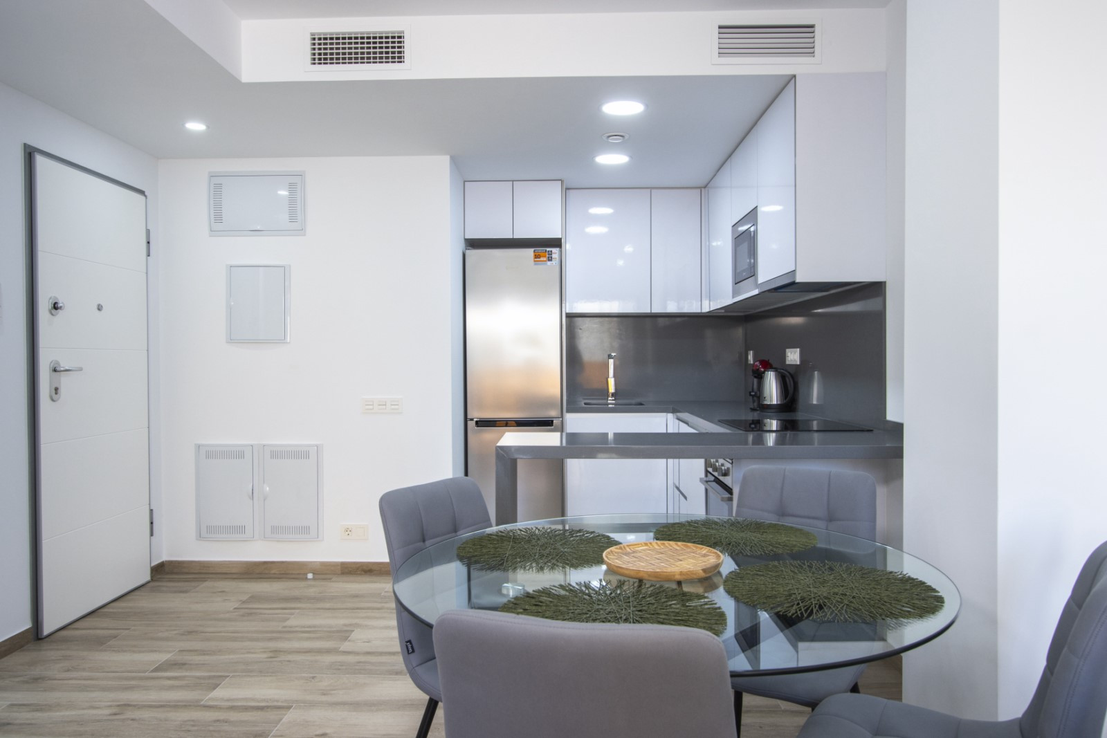 Se alquila un apartamento luminoso de un dormitorio en el centro de la ciudad. El apartamento de 35 m2 consta de una sala de estar, dormitorio, cocina de estilo americano, baño y un balcón. Hay todo lo necesario para la vida y el descanso: muebles, electrodomésticos, vajilla, ropa de cama y toallas. El salón está equipado con aire acondicionado. Televisión es española. En el balcón hay muebles de verano. El supermercado "Consum" a 150 metros, "Mercadona" – 250 metros. Los bares, cafeterías y restaurantes más cercanos están a menos de 50 metros. La estación de autobuses a unos 260 metros. La playa Del Cura se encuentra a unos 700 metros (unos 10 minutos a pie). Para un máximo de 4 personas. (¡no se admiten animales!). Solo se permite fumar en el balcón!