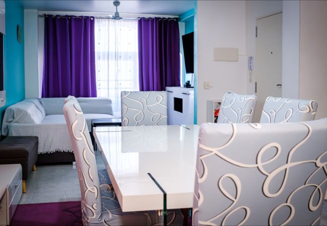 Ofrecemos en alquiler turístico un apartamento de un dormitorio a poca distancia del mar y la playa. El apartamento de 42 m2 consta de salón, 1 dormitorio, cocina estilo francés, baño y balcón. El apartamento tiene todo lo necesario para la vida y la recreación: muebles, electrodomésticos, vajilla, ropa de cama y toallas. El balcón tiene muebles de exterior. El salón tiene aire acondicionado. TV española, Internet inalámbrico. El área cuenta con una infraestructura bien desarrollada: en un radio de 150 metros hay dos supermercados y una tienda rusa, varios restaurantes y bares se encuentran a poca distancia. ¡El mar y la playa de Los Locos están a solo 400 metros! Opción de alojamiento: hasta 4 personas (¡sin animales!). ¡Solo se permite fumar en el balcón!