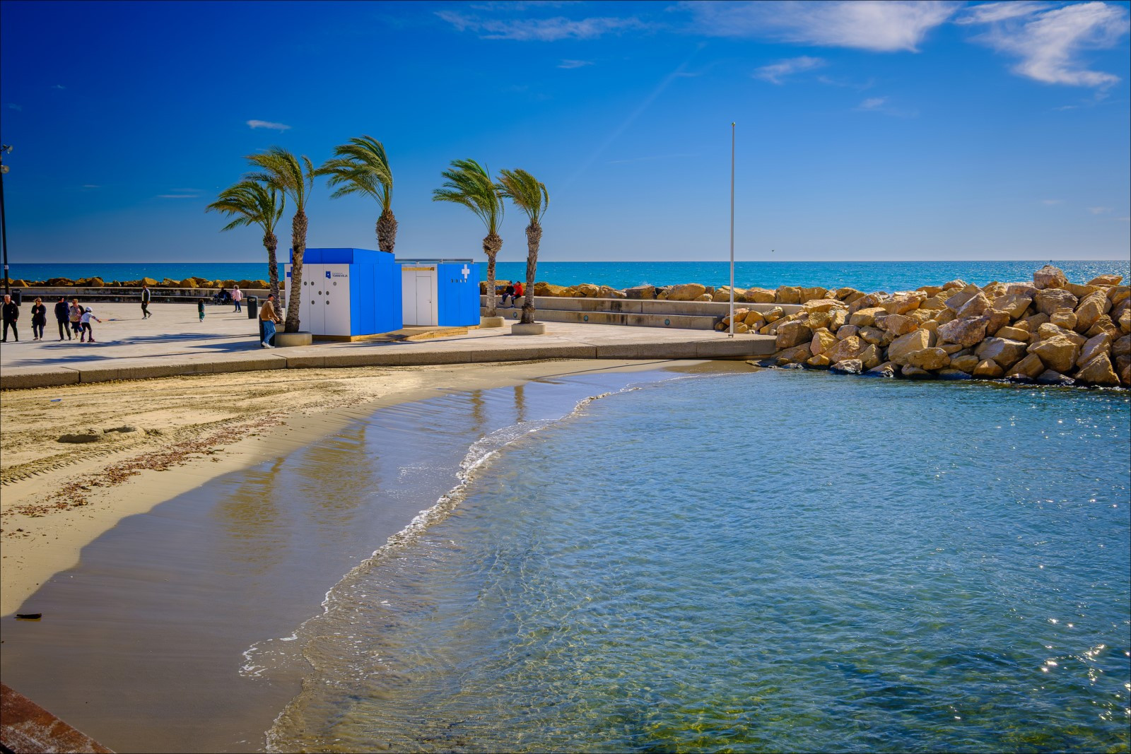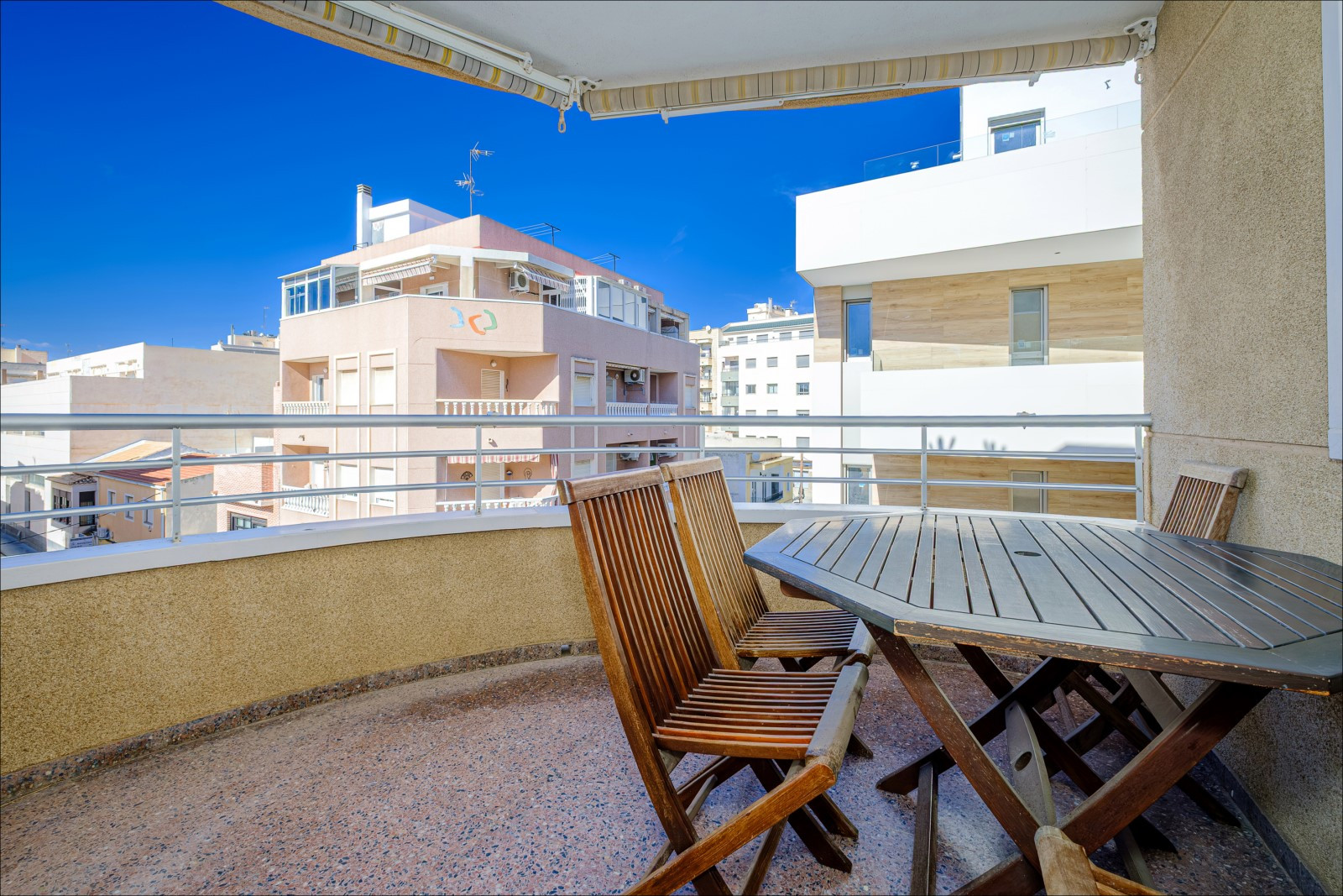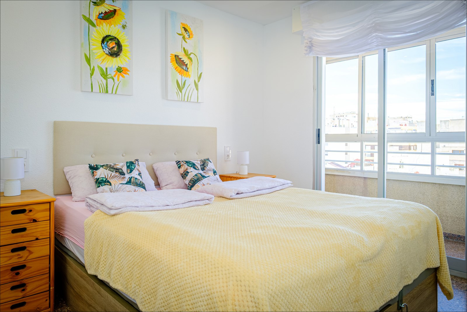 Este espacioso apartamento está disponible para alquilar y se encuentra a 300 metros de la popular playa de Del Cura. El apartamento, de 98 metros cuadrados, consta de salón, tres habitaciones, cocina americana y dos baños. Está completamente amueblado y equipado con todas las comodidades necesarias: muebles, electrodomésticos (incluyendo cafetera y lavavajillas), ropa de cama y toallas. También cuenta con televisión española y wifi. El aire acondicionado solo está disponible en el salón. Dos de las tres habitaciones tienen ventiladores de techo. El apartamento tiene capacidad para hasta 5 personas (no se admiten mascotas). Su conveniente ubicación permite disfrutar tanto de unas vacaciones de playa con sol y mar, como de paseos por las calles de la ciudad, repletas de bares y cafeterías. A poca distancia a pie se encuentran un gran supermercado Manper (a 300 metros), una estación de autobuses y la calle principal de la ciudad, Ramón Gayud, con restaurantes (el más cercano está a 100 metros), tiendas y boutiques. Solo se permite fumar en el balcón. ¡El incumplimiento de esta norma conlleva una multa de 200 €!