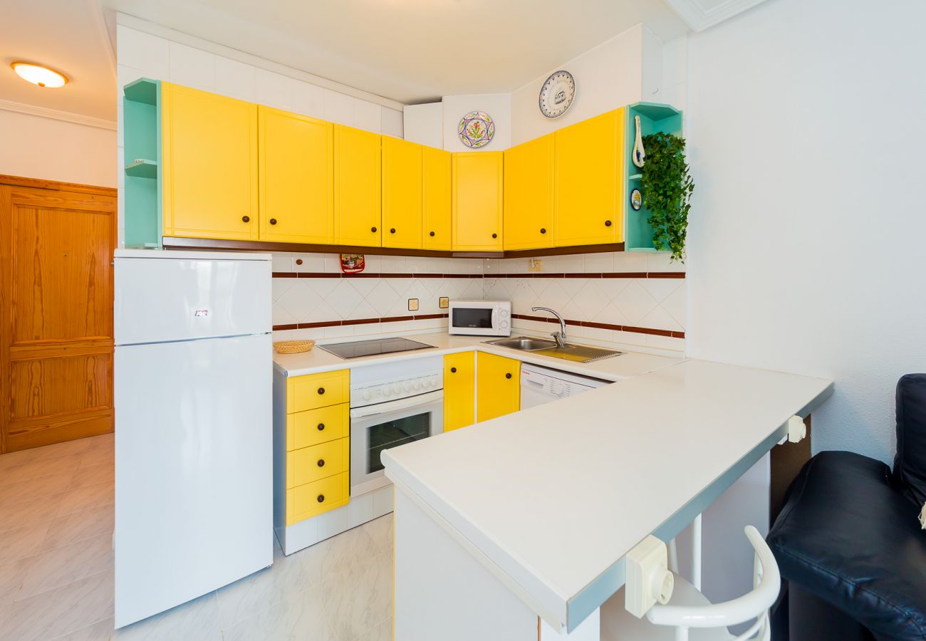 Ofrecemos en alquiler un pequeño y acogedor estudio en una casa con piscina a poca distancia del mar en la mejor zona de playa de Torrevieja - La Mata! Hay todo lo necesario para vivir y descansar: muebles, electrodomésticos, vajilla, ropa de cama y toallas. Aire acondicionado instalado. Televisión española. El balcón ofrece vistas laterales al mar. Dentro de la casa hay una zona verde con una gran piscina. Al mar y la playa poco más de 400 metros. Las calles de los alrededores y la costa están llenas de acogedores cafés, bares y restaurantes. Tienda "Carefour-Express" 550 metros, hasta