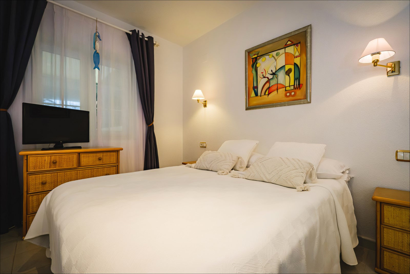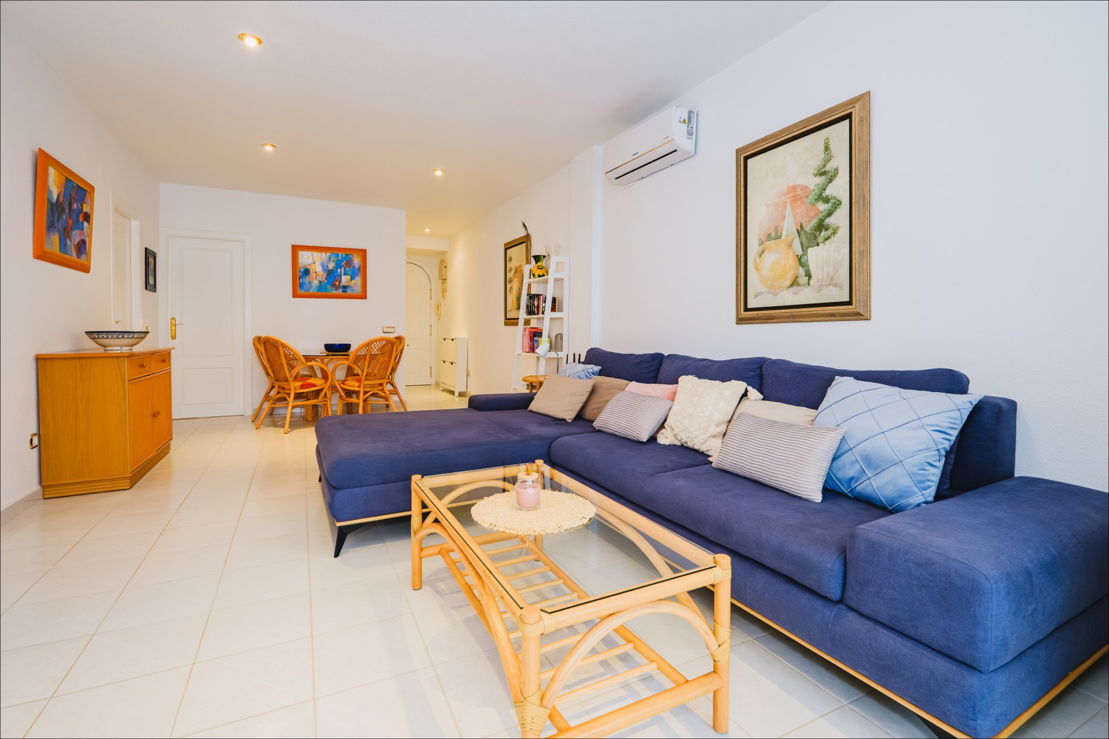 Two-bedroom apartment for rent in a beautiful complex near the sea and beach. The apartment is 93 sq.m. and consists of a living room, two bedrooms, a separate kitchen, two bathrooms and a balcony. Everything is available for a comfortable and relaxing stay: furniture, household appliances (including a dishwasher and coffee maker), kitchenware, bed linen and towels. Central air conditioning for heating and cooling. Spanish television, wireless internet. Summer furniture on the balcony. The complex has a swimming pool. The sea and El Moncayo beach are 300 metres away. Accommodation: up to 4 people (no pets!). Smoking is only allowed on the balcony (a fine of 200 euros for violation!). Check-in from 15:00 to 19:00. Check-out from 09:00 to 11:00. An additional fee of 20 euros will be charged for check-in or check-out outside the company/office working hours, on weekends and holidays. Office hours: Monday to Friday from 9:00 to 19:00, Saturday from 10:00 to 15:00, Sunday - closed.