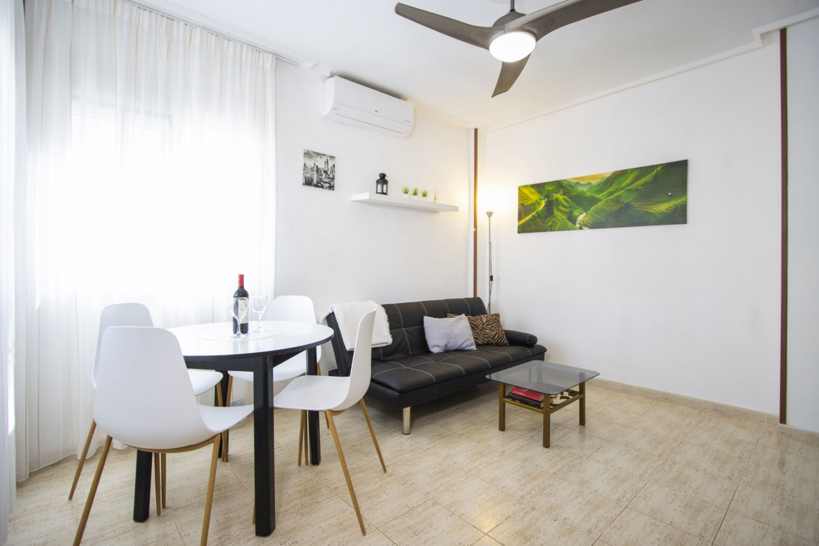 We offer for tourist rent a cozy, bright one-bedroom apartment within walking distance from the sea and the beach! The 39 m2 apartment consists of a living room, 1 bedroom, American style kitchen, bathroom and balcony. The apartment has everything you need for living and recreation: furniture, household appliances (including a coffee maker), dishes, bed linen and towels. The balcony has outdoor furniture. There is air conditioner in the main room. TV Spanish, wireless Internet. The area has a well-developed infrastructure: the supermarket "Consum" and the Russian store "Kalinka" are 250 meters away. There are many bars and restaurants within walking distance. The sea and the popular city beach of Del Cura are only 150 meters away! Accommodation option - up to 4 people (no animals!). Smoking is only allowed on the balcony!