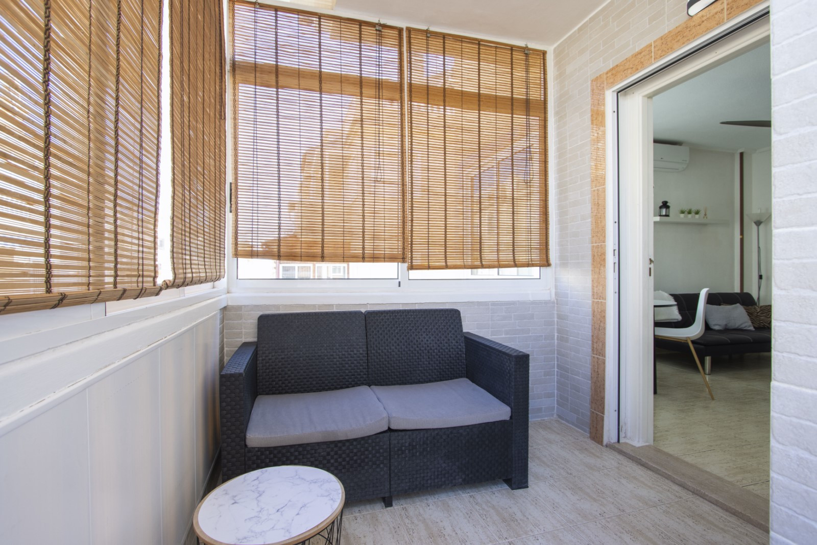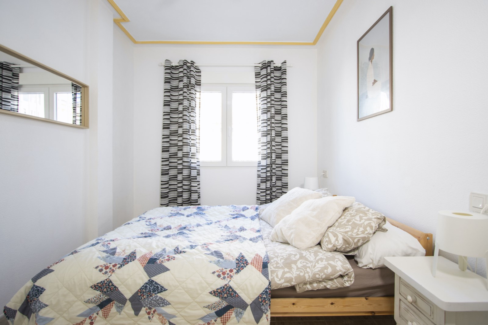 The apartment is set out over 35 m2 and consists of a living room, a bedroom, American style kitchen, bathroom and a private balcony. It is fully equipped with furniture, appliances, crockery, bedding and towels. The living room benefits from with air conditioning. Spanish TV is also available. On the balcony there is summer furniture. There is local amenities all in walking distance including the bust station, bars, cafes, restaurants and much more. It is within walking distance to all local amenities including supermarkets, bars and cafes. The blue flag beach of Del Cura is approximately a 10 minutes walk. The apartment can sleep upto 4 people. Animals are not permitted and smoking is only allowed on the balcony.