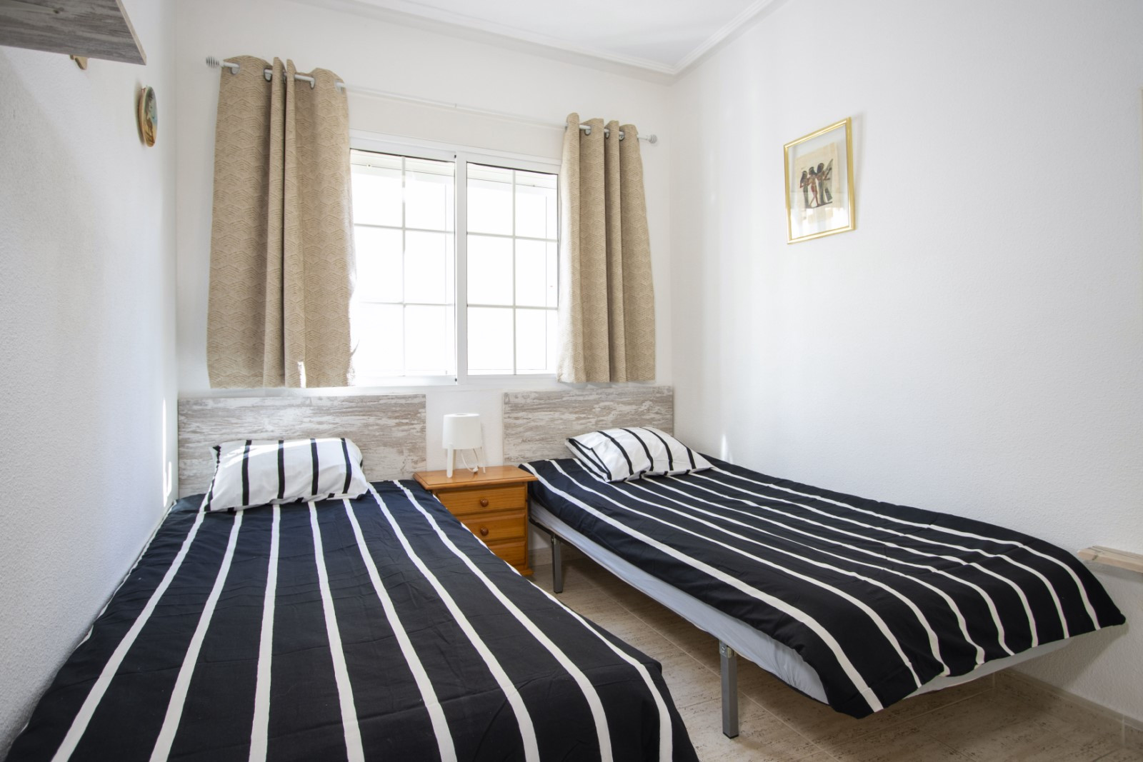 We offer for rent a bungalow in an urbanization with a swimming pool in the area of Aguas Nuevas close to La Mata beach. The apartment consists of a living room, two bedrooms, a kitchen and a bathroom and is 42 sqms. in total. The apartment has everything necessary for comfortable living: furniture, appliances (including coffee maker), dishes, linens and towels, Spanish television and air-conditioning. It is very well located close to a large Mercadona supermarket which is about 350 meters away. There are many bars and cafes nearby. To the seafront is about 1000 meters and its about 1500 meters to the beautiful La Mata beach. Accommodation option is for up to 4 people (no pets). It is strictly forbidden to smoke inside!