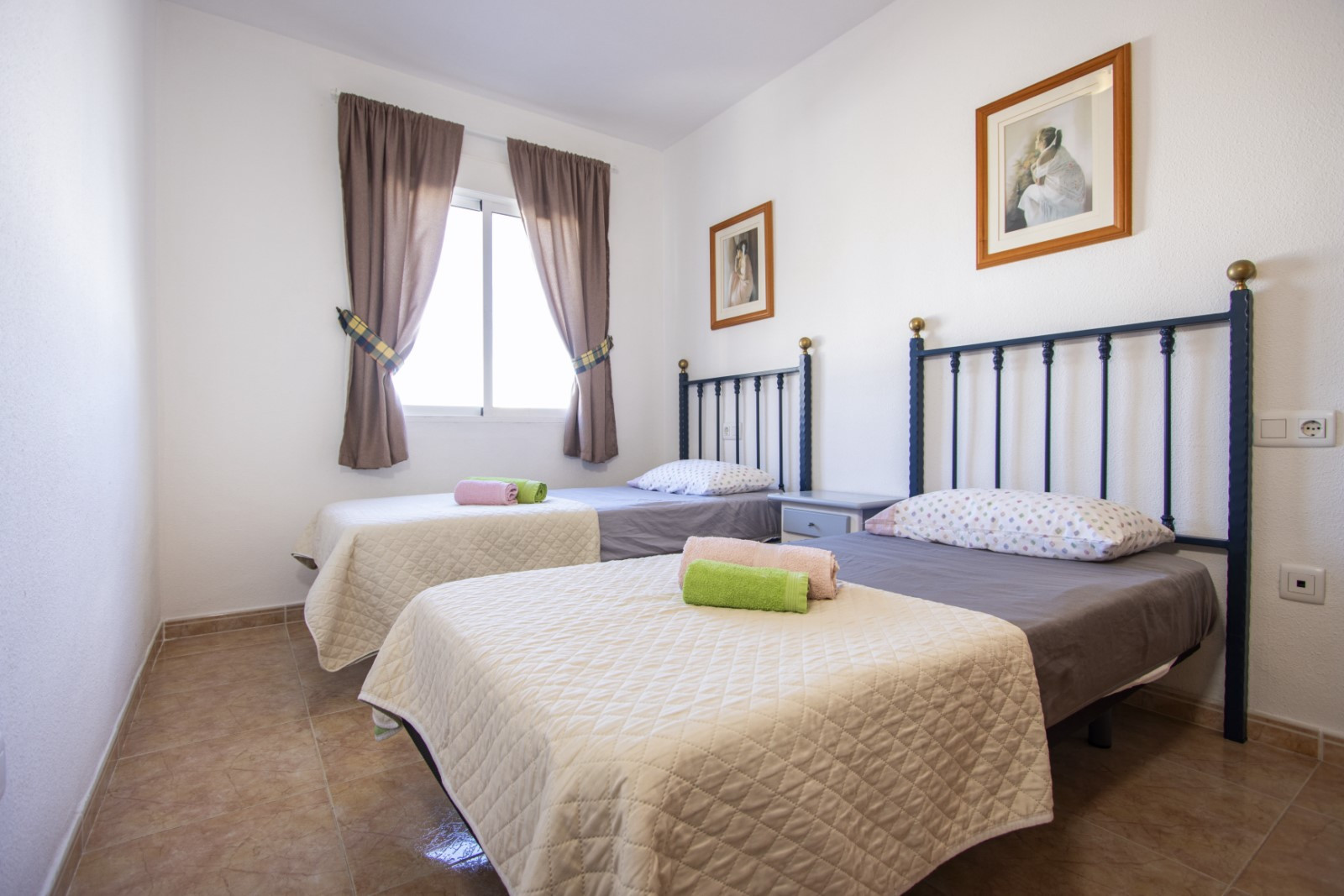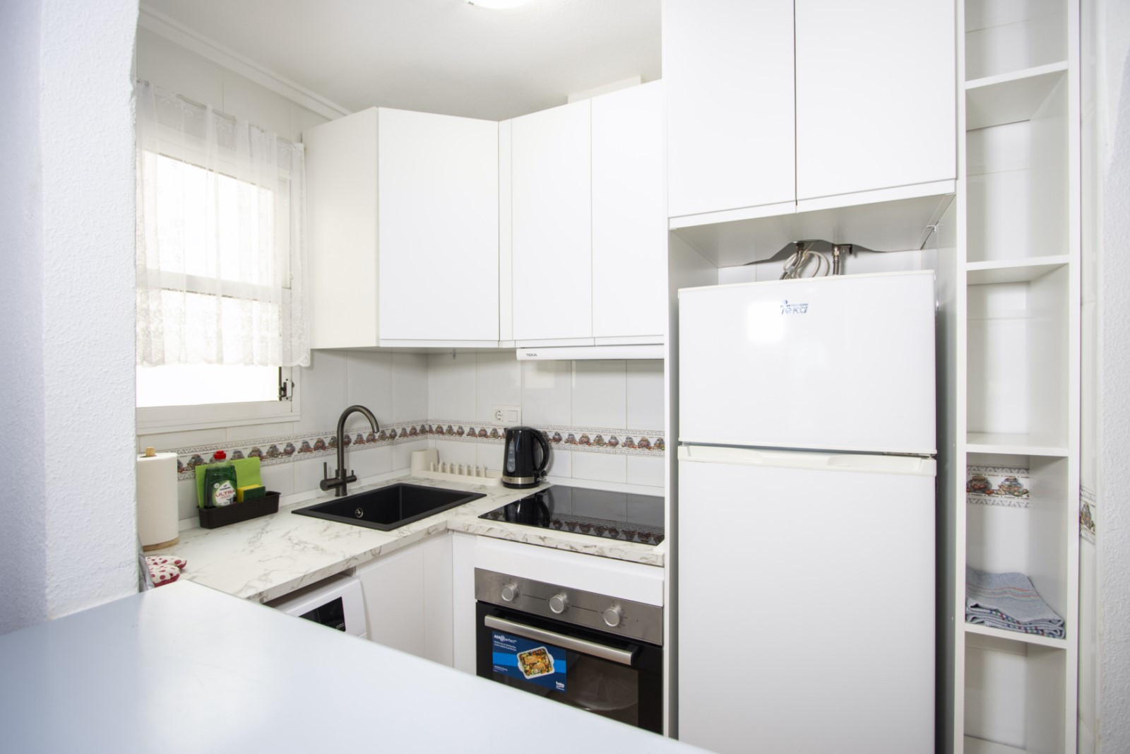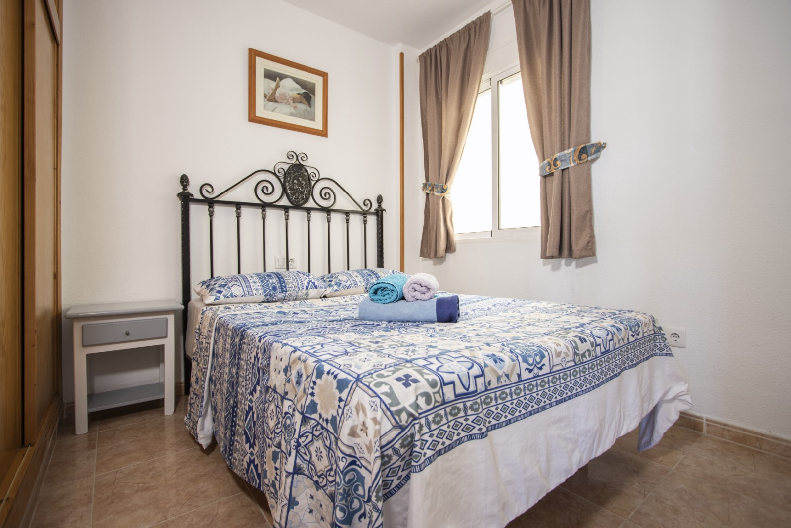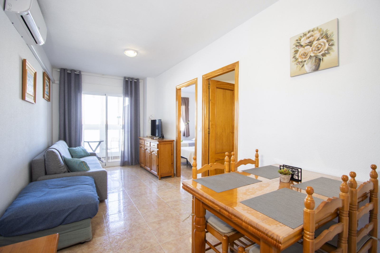 The apartment is set out over 35 m2 and consists of a living room, a bedroom, American style kitchen, bathroom and a private balcony. It is fully equipped with furniture, appliances, crockery, bedding and towels. The living room benefits from with air conditioning. Spanish TV is also available. On the balcony there is summer furniture. There is local amenities all in walking distance including the bust station, bars, cafes, restaurants and much more. It is within walking distance to all local amenities including supermarkets, bars and cafes. The blue flag beach of Del Cura is approximately a 10 minutes walk. The apartment can sleep upto 4 people. Animals are not permitted and smoking is only allowed on the balcony.