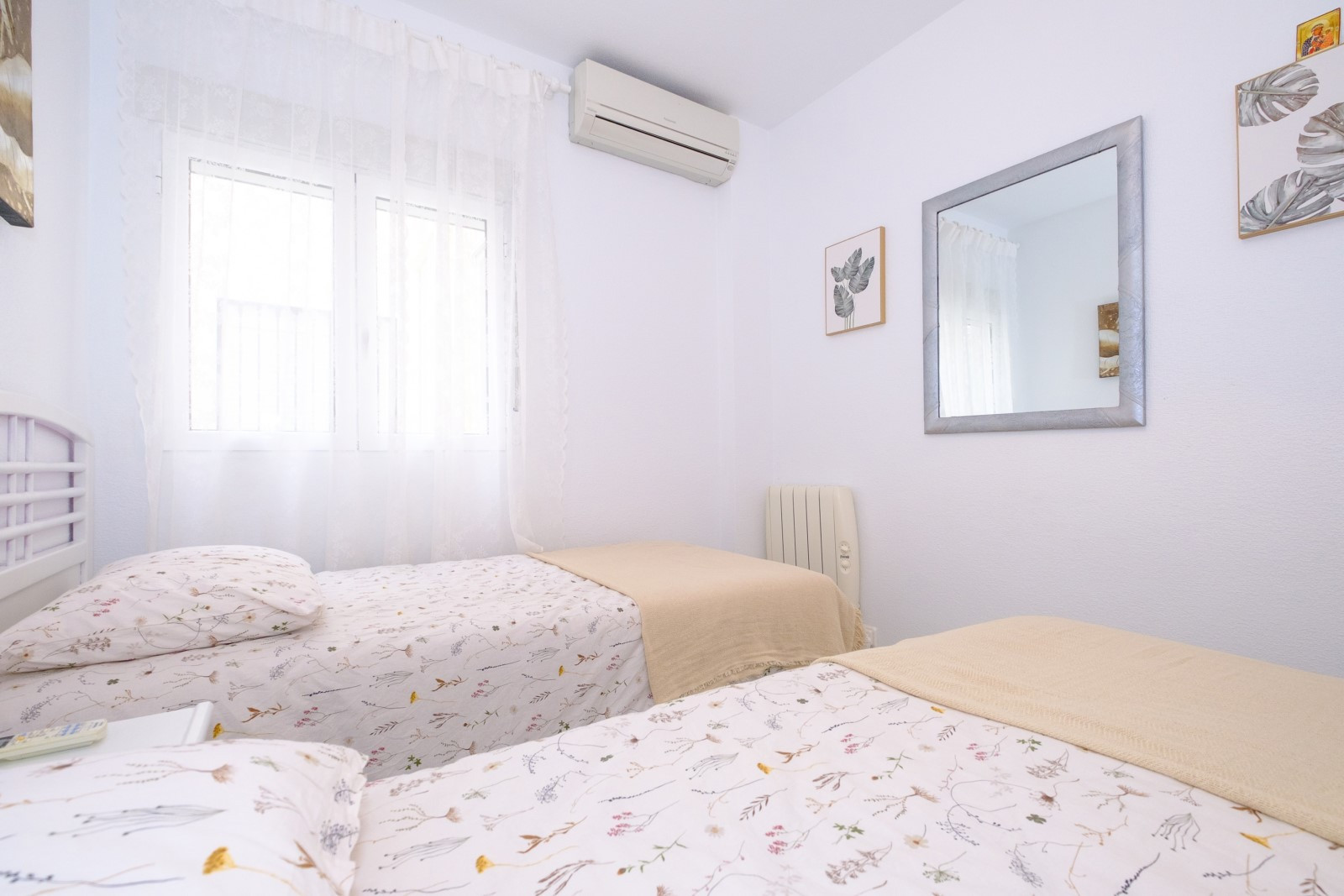 The apartment is set out over 35 m2 and consists of a living room, a bedroom, American style kitchen, bathroom and a private balcony. It is fully equipped with furniture, appliances, crockery, bedding and towels. The living room benefits from with air conditioning. Spanish TV is also available. On the balcony there is summer furniture. There is local amenities all in walking distance including the bust station, bars, cafes, restaurants and much more. It is within walking distance to all local amenities including supermarkets, bars and cafes. The blue flag beach of Del Cura is approximately a 10 minutes walk. The apartment can sleep upto 4 people. Animals are not permitted and smoking is only allowed on the balcony.