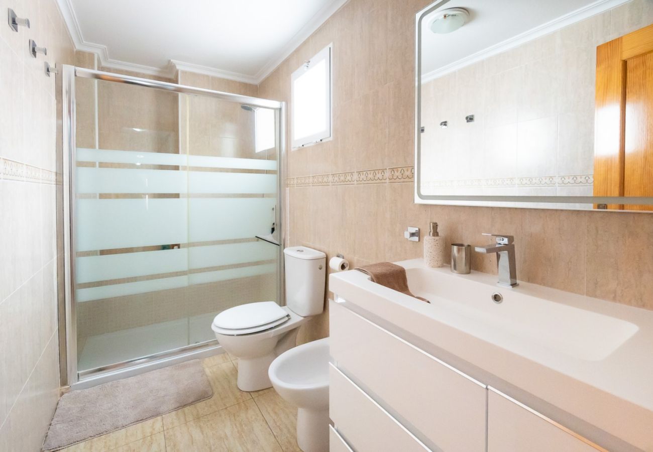 For rent a nice two-bedroom apartment near the sea. The apartment is located on the ground floor and has an entrance hall, two bedrooms, lounge, kitchen, and bathroom. It is equipped with new furniture, appliances, dishes, linens and towels. There is Spanish TV available. The salon has benefits from air conditioning. The apartment can sleep up to 6 people. It is a very popular central location with in walking distance to the promenade and Del Cura beach located 200 meters away. There are plenty of attractive bars and cafes, shop, hairdresser, disco-pub and restaurants - all within walking distance.