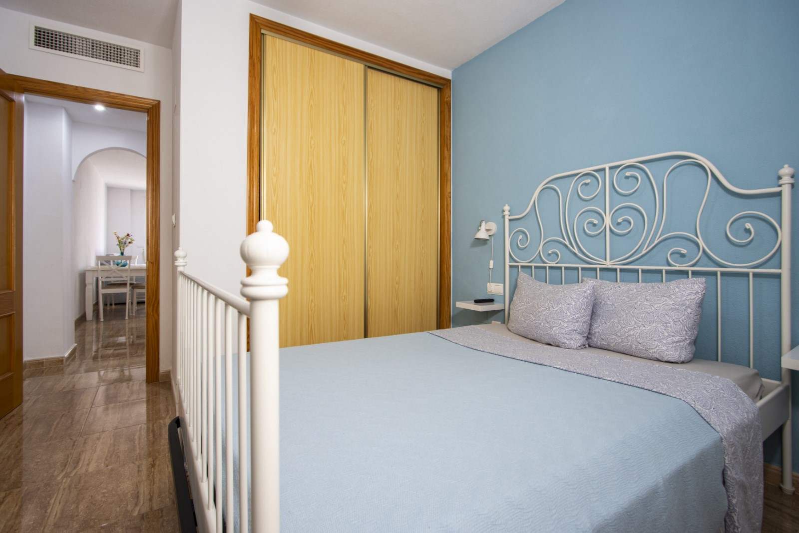 We offer for tourist rent a two-bedroom apartment within walking distance of two city beaches. The apartment is 60 m2 and consists of a living room, two bedrooms, an American-style kitchen, a bathroom and a balcony. The apartment has everything you need for living and relaxing: furniture, household appliances (including a coffee maker), dishes, bed linen and towels. Central air conditioning. Spanish TV, wireless Internet. The area has excellent infrastructure. The supermarket "Consum" is about 200 meters away, and there are many bars and restaurants within walking distance. The sea and two city beaches Los Locos and Del Cura are 500 meters away. Accommodation option - up to 3 people (no animals!). Smoking is allowed only on the balcony! The fine for violation is 200 euros!