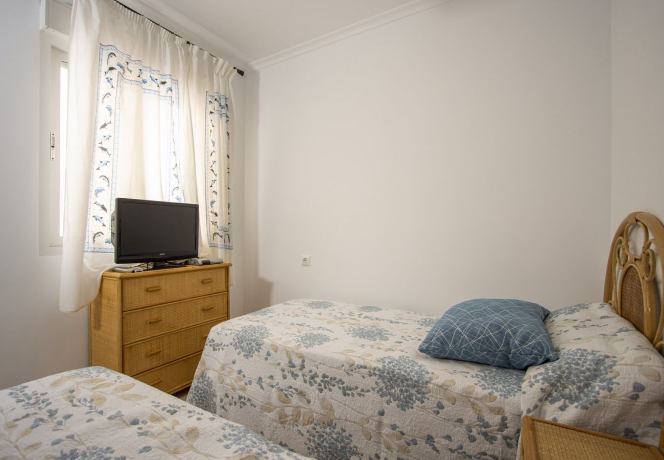 The apartment is set out over 35 m2 and consists of a living room, a bedroom, American style kitchen, bathroom and a private balcony. It is fully equipped with furniture, appliances, crockery, bedding and towels. The living room benefits from with air conditioning. Spanish TV is also available. On the balcony there is summer furniture. There is local amenities all in walking distance including the bust station, bars, cafes, restaurants and much more. It is within walking distance to all local amenities including supermarkets, bars and cafes. The blue flag beach of Del Cura is approximately a 10 minutes walk. The apartment can sleep upto 4 people. Animals are not permitted and smoking is only allowed on the balcony.