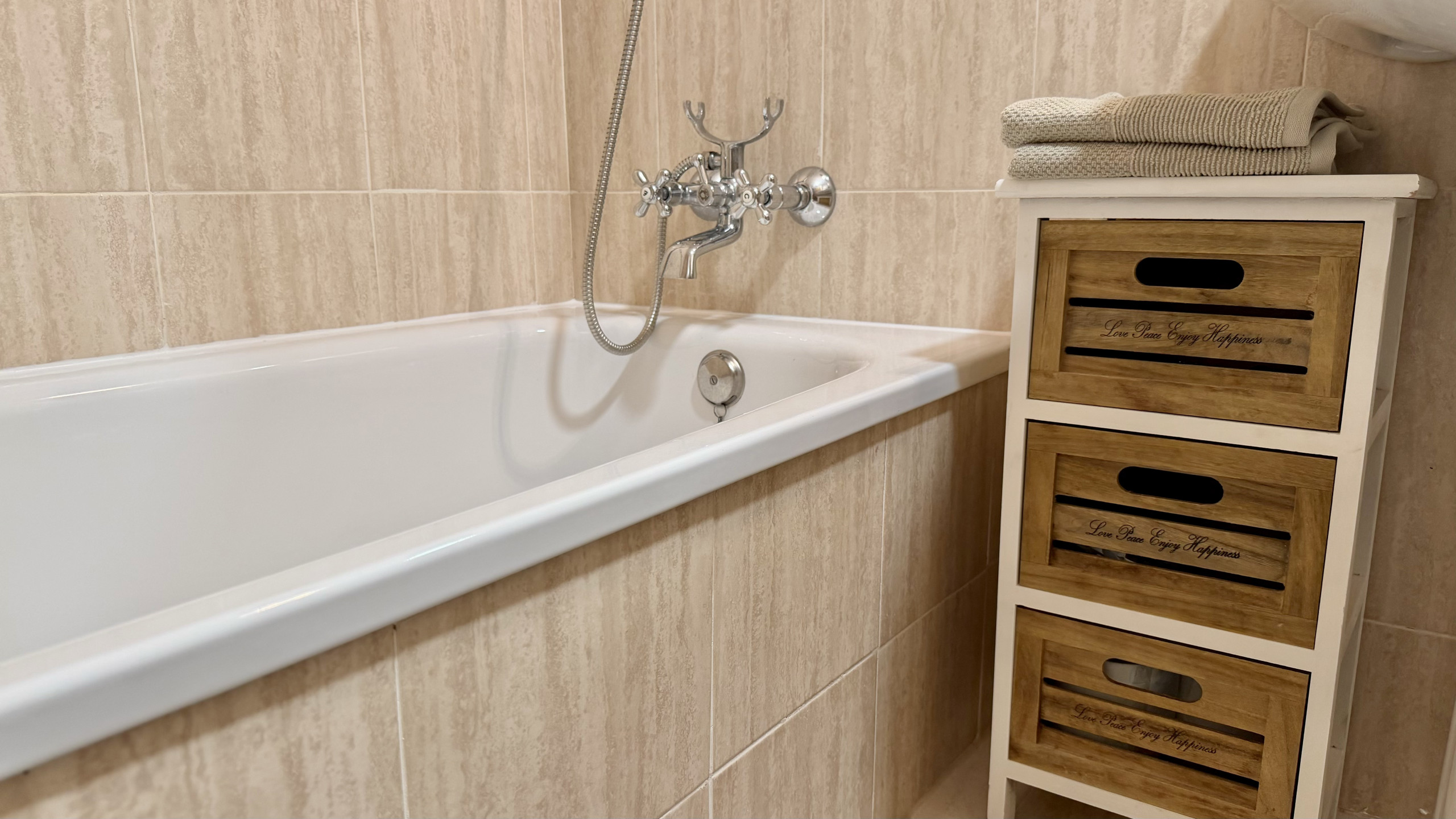 The apartment has 1 double bedroom, a sofa-bed in the living room, 2 terraces, 1 bathroom with bath, parking is included, WIFI, dishwasher.