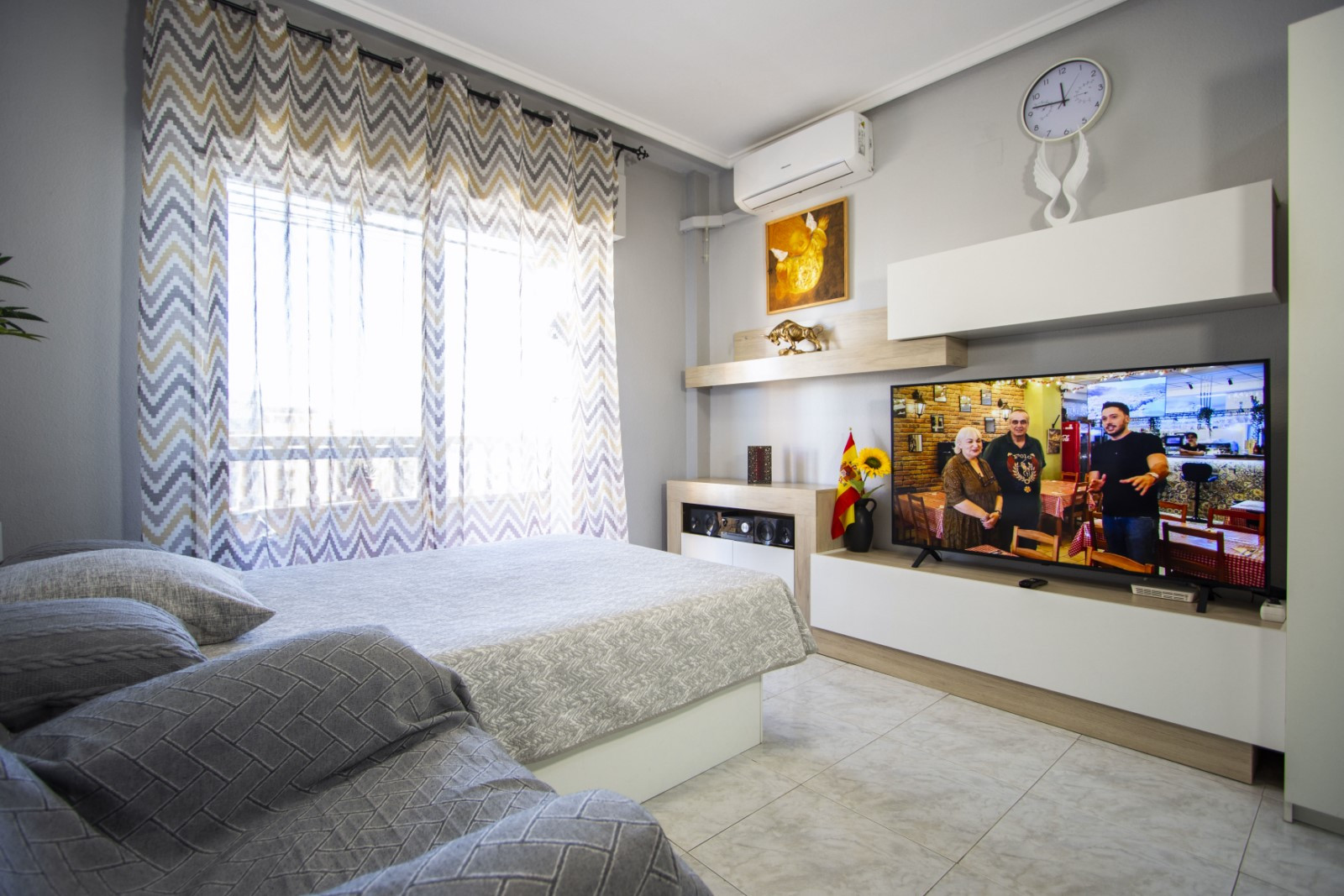 We offer for rent a cozy bright studio apartment in the city center! The 36 m2 apartment consists of a living room combined with a kitchen, a bathroom and a balcony. There is everything you need for living and recreation: furniture, household electrical appliances, dishes, bed linen and towels. Installed air conditioning. TV Spanish, wireless Internet. The area has a well-developed infrastructure. The network supermarket "ALDI" is located 250 meters, "Consum" 350 meters. The nearest bar is less than 50 meters away! To the sea and Acequion beach a little more than 1 kilometer, to Del Cura beach about one and a half kilometers. Accommodation option - 2 people (no animals!). Smoking is only allowed on the balcony!