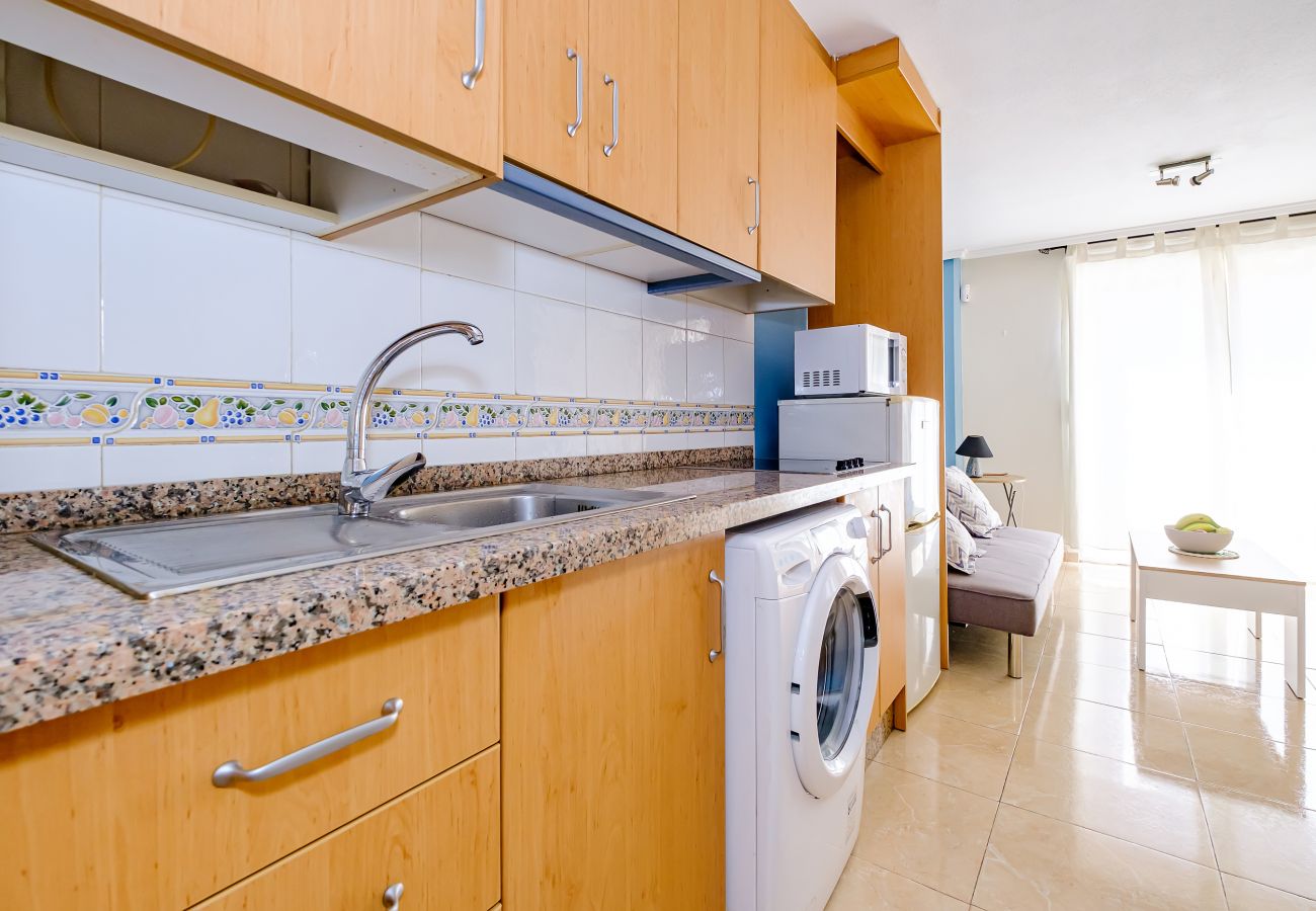Предлагаем в аренду квартиру-студию в шаговой доступности от моря и пляжа! Апартаменты площадью 33 м2 состоят из салона, совмещенного с кухней, санузла и застекленного балкона. Особенность студии – перегородка, которая отделяет салон от пространства, где размещена кровать. Имеется все необходимое для проживания и отдыха: мебель, бытовая техника, посуда, постельное белье и полотенца. В студии установлен кондиционер. На балконе есть летняя мебель. Телевидение испанское, беспроводной Интернет. В районе хорошо развита инфраструктура. До супермаркета «Consum» 200 метров, аптека в 150 метрах, банкомат в 250 метрах. Ближайшие бары и рестораны в 50 метрах. До моря и популярного пляжа Дель Кура всего 200 метров! Вариант размещения – до 3 человек (без животных!). Курение допускается только на балконе!