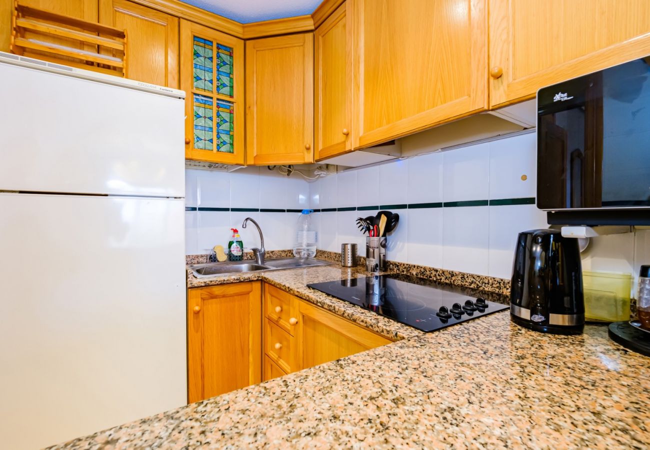 Предлагаем в туристическую аренду уютную светлую квартиру с одной спальней в шаговой доступности от моря и пляжа! Апартаменты площадью 39 м2 состоят из салона, 1 спальни, кухни американского типа, санузла и балкона. В квартире имеется все необходимое для проживания и отдыха: мебель, бытовые электроприборы (включая кофеварку), посуда, постельное белье и полотенца. На балконе есть летняя мебель. В зале установлен кондиционер . Телевидение испанское, беспроводной Интернет. В районе прекрасно развита инфраструктура: супермаркет «Консум» и русский магазин «Калинка» находятся в 250 метрах. В пешей доступности множество баров и ресторанов. До моря и популярного городского пляжа Дель Кура всего 150 метров! Вариант размещения – до 4 человек (без животных!). Курение допускается только на балконе!