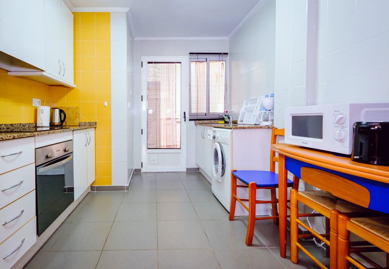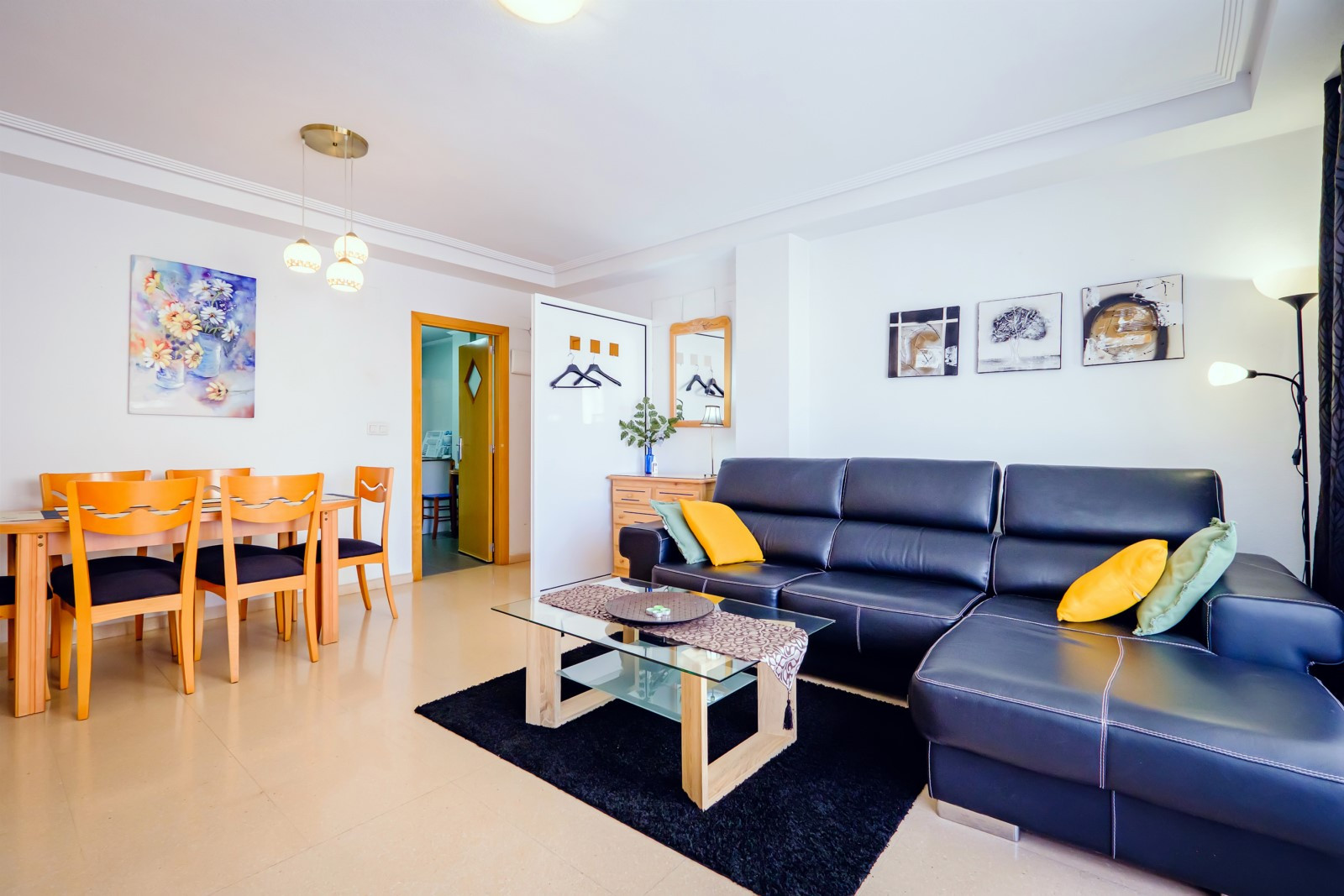 Предлагаем в аренду просторную квартиру с тремя спальнями в районе с развитой инфраструктурой и в пешей доступности от моря и пляжа. Апартаменты площадью 103 м2 состоят из салона, трех спален, отдельной кухни, двух санузлов и балкона. В квартире есть все необходимое для комфортного проживания и отдыха: мебель, бытовые электроприборы (включая кофеварку), посуда, постельное белье и полотенца. В салоне установлен кондиционер. Для спален предусмотрены напольные вентиляторы. Телевидение испанское, беспроводной Интернет. До супермаркета «Mercadona» 120 метров. Городской автовокзал и остановка общественного транспорта буквально через дорогу – всего 50 метров. Ближайшие бары и рестораны в радиусе 200 метров. До моря и популярного городского пляжа Del Cura всего 500 метров! Вариант размещения – до 6 человек (без животных!). Курение допускается только на балконе!