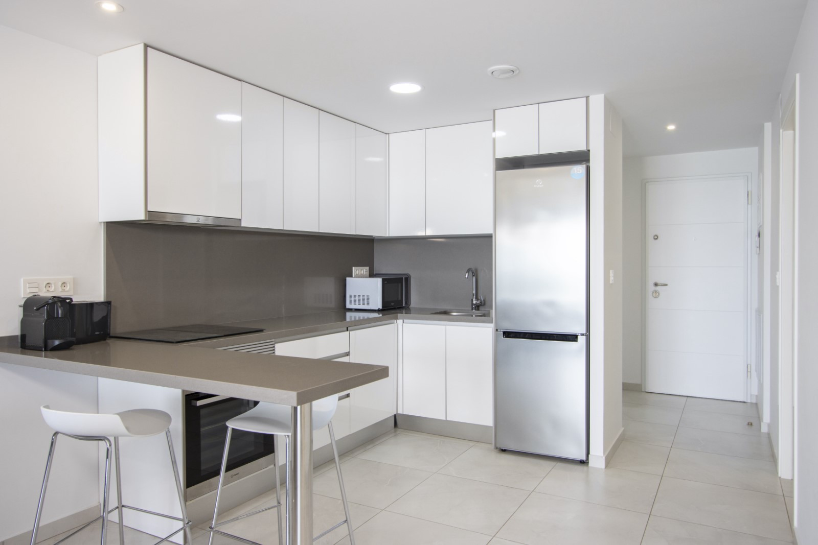 Предлагаем в аренду квартиру с двумя спальнями в новостройке «Residencial Alegría XII” в нескольких шагах от моря и пляжа. Апартаменты площадью 90 м2 состоят из салона, двух спален, двух санузлов, кухни американского типа и балкона с видом на море. Имеется все необходимое для комфортного проживания и отдыха: мебель, бытовые электроприборы (включая посудомоечную машину и кофеварку), посуда, постельное белье и полотенца. Кондиционирование центральное, беспроводной Интернет. Есть парковочное место в подземном гараже. Телевидение испанское. Море, красивая набережная для прогулок и пляж Лос Локос буквально через дорогу. В комплексе есть крытый бассейн и финская сауна (услуга сауны платная!). В шаговой доступности от здания супермаркет и множество баров и кафе. Вариант размещения – до 4 человек (строго без животных!). Курение разрешается только на балконе!