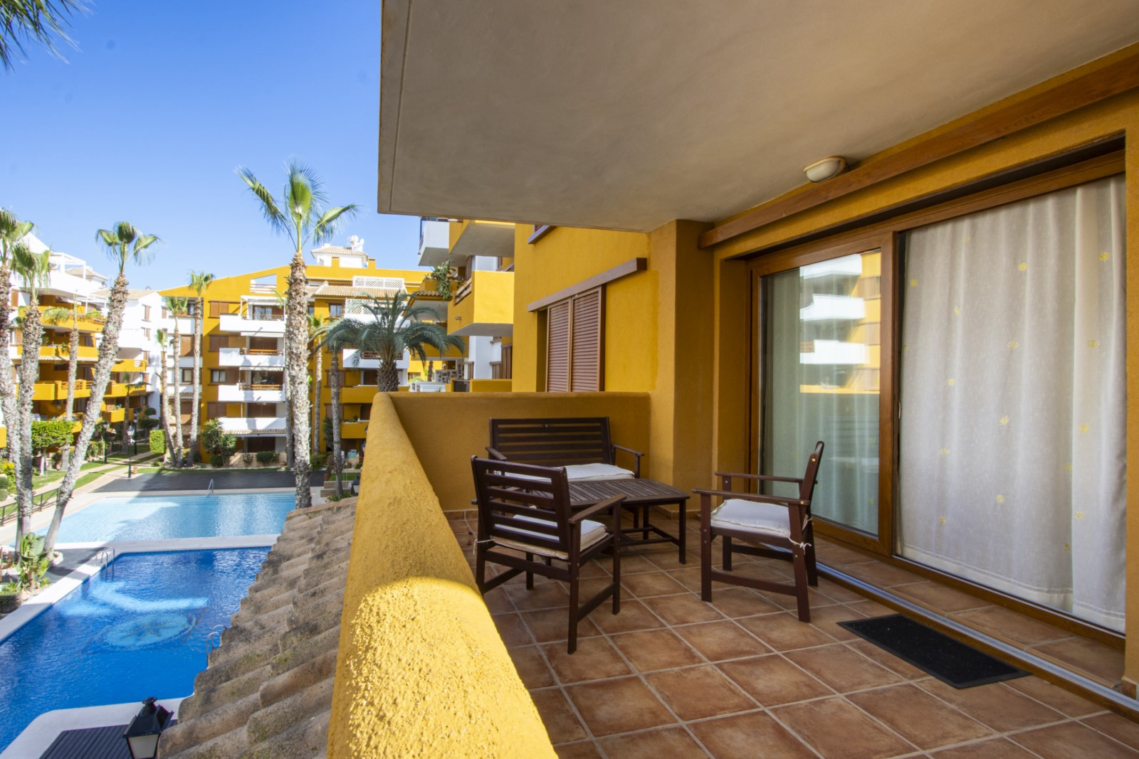 Предлагаем в туристическую аренду квартиру с двумя спальнями в популярном комплексе “La Recoleta” в Пунта Приме. Квартира площадью 95 м2 состоит из салона, двух спален, кухни американского типа, двух санузлов (с ванной и душевой кабиной) и террасы. Имеется все необходимое для комфортного проживания и отдыха: мебель, бытовые электроприборы (включая посудомоечную машину и кофеварку), посуда, постельное белье и полотенца. На террасе есть летняя мебель. Кондиционирование центральное. Телевидение испанское, беспроводной Интернет. На территории несколько бассейнов и большая зеленая зона с прогулочными дорожками. В районе хорошо развита инфраструктура. Ближайший ресторан находится в 150 метрах. В радиусе 900 метров расположены два супермаркета. До моря и пляжа около 400 метров. Вариант размещения – до 4 человек (без животных!). Курение допускается только на террасе! За нарушение – штраф 200 евро!