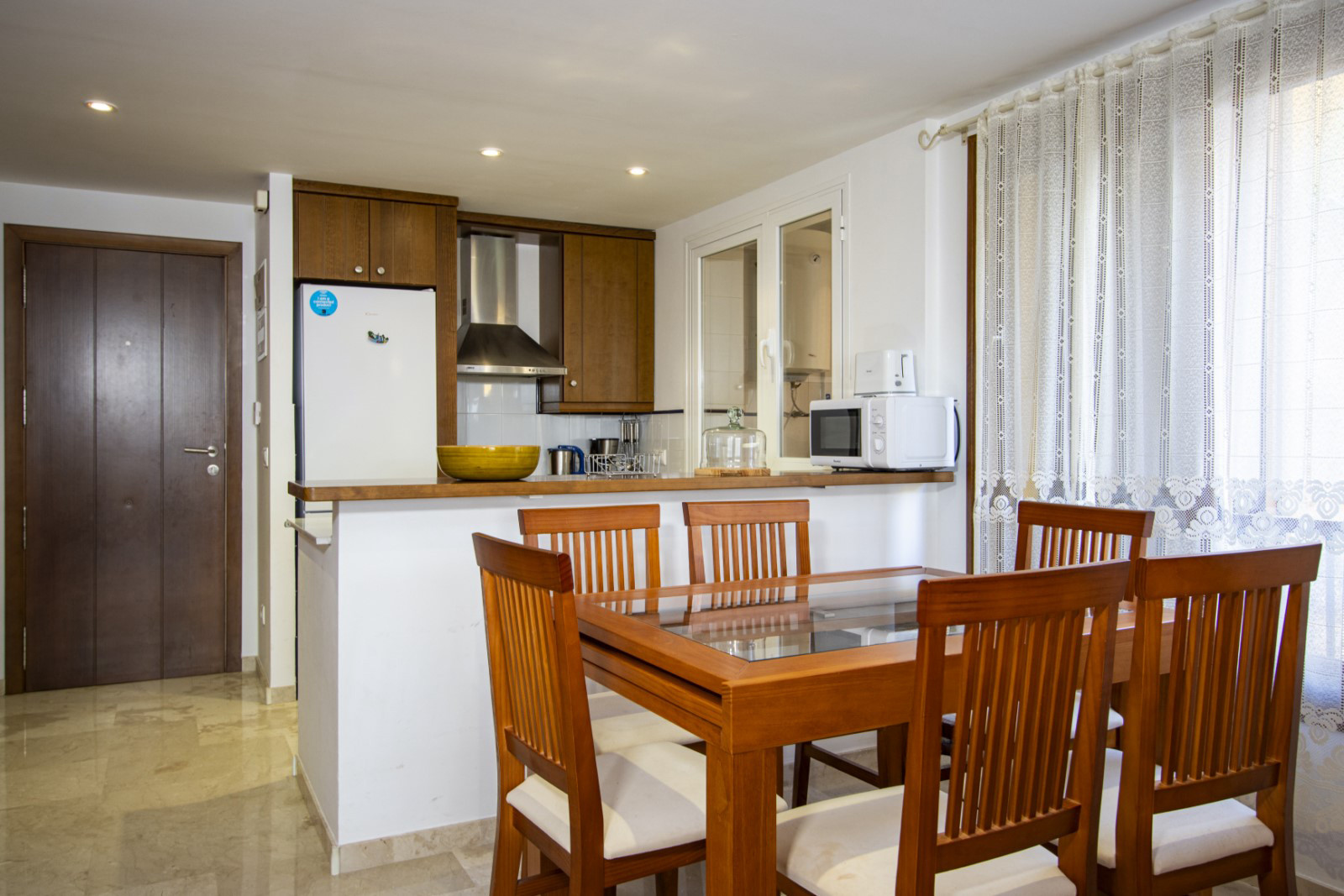 Предлагаем в туристическую аренду уютную светлую квартиру с одной спальней в шаговой доступности от моря и пляжа! Апартаменты площадью 39 м2 состоят из салона, 1 спальни, кухни американского типа, санузла и балкона. В квартире имеется все необходимое для проживания и отдыха: мебель, бытовые электроприборы (включая кофеварку), посуда, постельное белье и полотенца. На балконе есть летняя мебель. В зале установлен кондиционер . Телевидение испанское, беспроводной Интернет. В районе прекрасно развита инфраструктура: супермаркет «Консум» и русский магазин «Калинка» находятся в 250 метрах. В пешей доступности множество баров и ресторанов. До моря и популярного городского пляжа Дель Кура всего 150 метров! Вариант размещения – до 4 человек (без животных!). Курение допускается только на балконе!