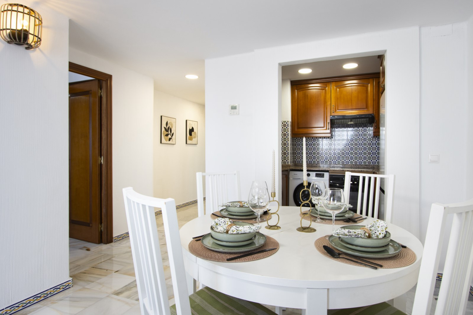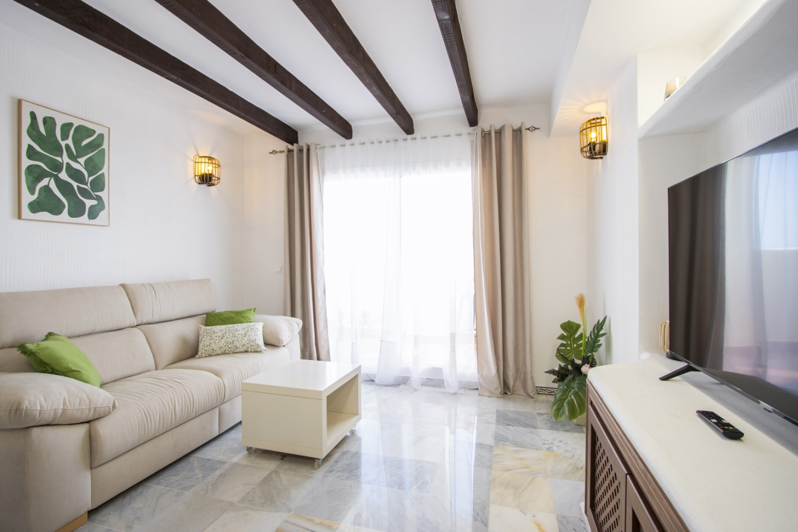 Предлагаем в туристическую аренду уютную светлую квартиру с одной спальней в шаговой доступности от моря и пляжа! Апартаменты площадью 39 м2 состоят из салона, 1 спальни, кухни американского типа, санузла и балкона. В квартире имеется все необходимое для проживания и отдыха: мебель, бытовые электроприборы (включая кофеварку), посуда, постельное белье и полотенца. На балконе есть летняя мебель. В зале установлен кондиционер . Телевидение испанское, беспроводной Интернет. В районе прекрасно развита инфраструктура: супермаркет «Консум» и русский магазин «Калинка» находятся в 250 метрах. В пешей доступности множество баров и ресторанов. До моря и популярного городского пляжа Дель Кура всего 150 метров! Вариант размещения – до 4 человек (без животных!). Курение допускается только на балконе!