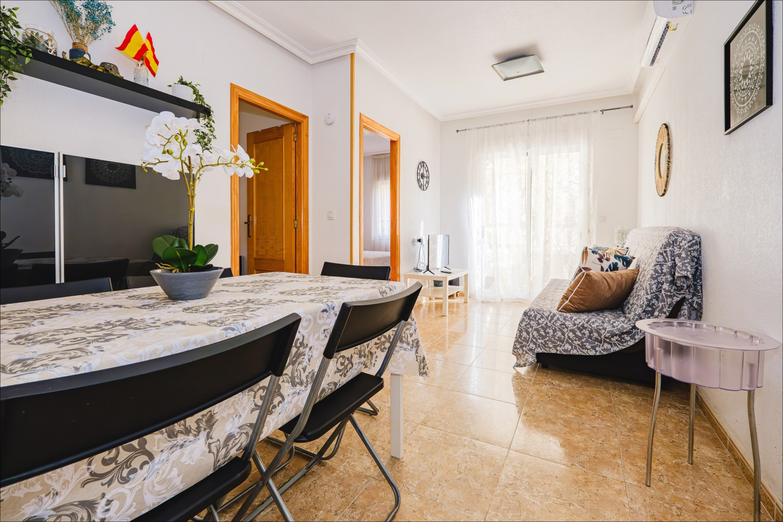 Предлагаем для зимней аренды квартиру с двумя спальнями в пешей доступности от двух городских пляжей. Апартаменты площадью 55 м2 состоят из салона, двух спален, кухни, санузла и балкона. В квартире есть все необходимое для проживания и отдыха: мебель, бытовые электроприборы (включая кофеварку), посуда, постельное белье и полотенца. В салоне установлен кондиционер. Телевидение испанское, беспроводной Интернет. Есть парковочное место. В районе прекрасно развита инфраструктура. До супермаркета «Консум» менее 200 метров, в пешей доступности множество баров и ресторанов. До моря и двух городских пляжей Лос Локос и Дель Кура 500 метров. Вариант размещения – до 6 человек (без животных!). Курение разрешается только на балконе.