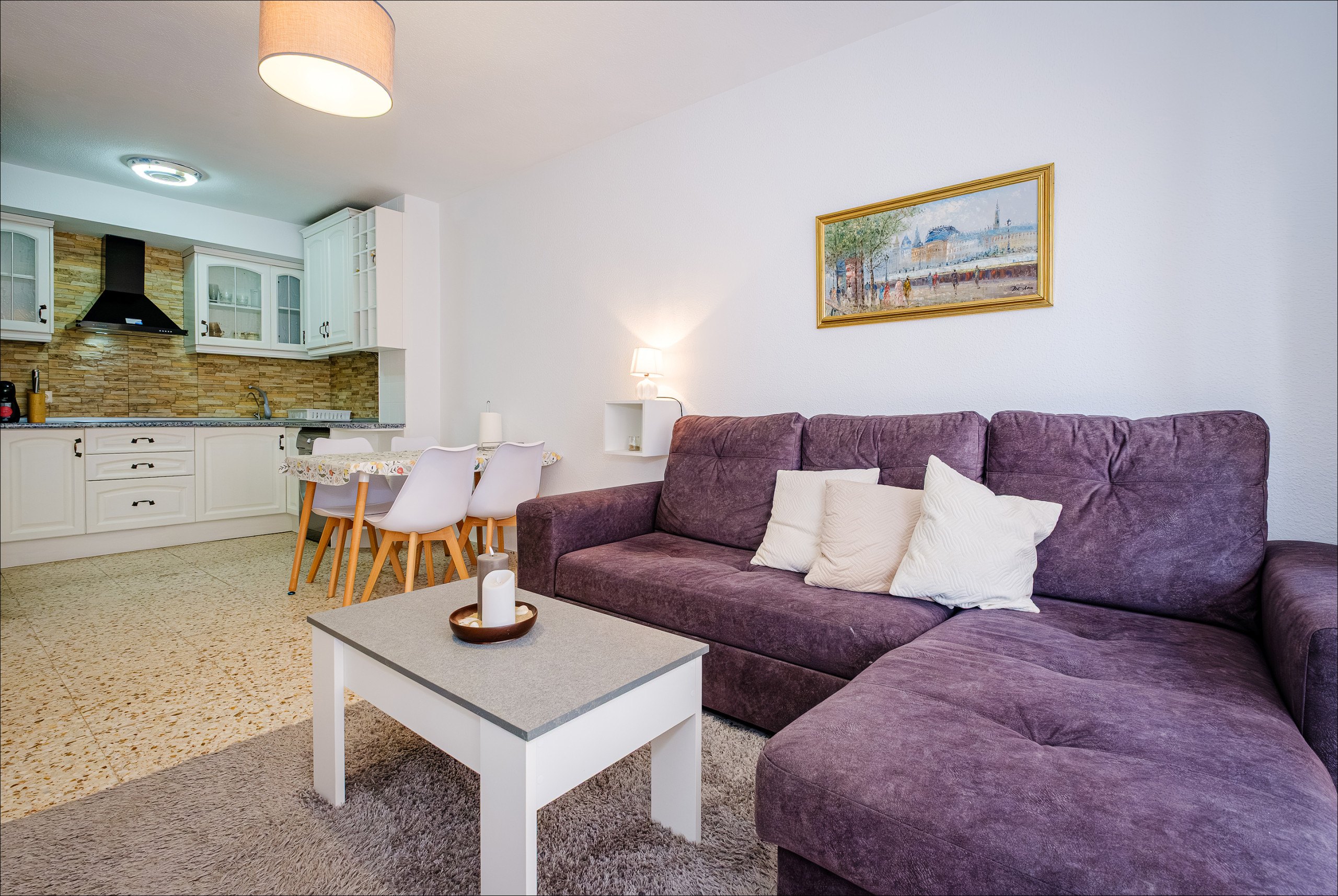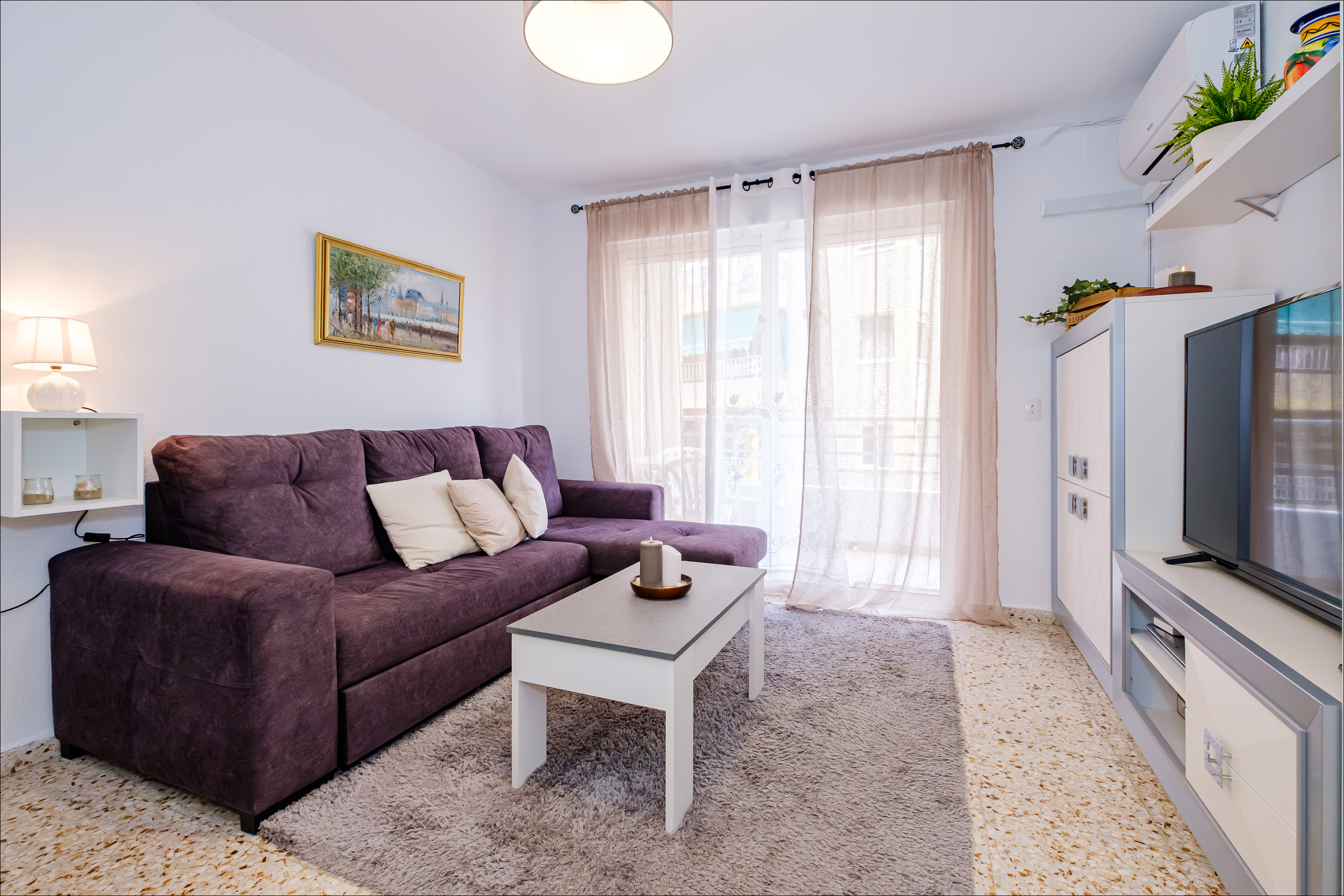 Предлагаем в аренду квартиру с двумя спальнями в шаговой доступности от популярного городского пляжа Дель Кура. Апартаменты площадью 70 м2 состоят из салона, двух спален, кухни , санузла и 2-х балконов. В квартире имеется все необходимое для проживания и отдыха: мебель, бытовая техника, посуда, постельное белье и полотенца. В салоне установлен кондиционер. Телевидение испанское, беспроводной Интернет. В районе прекрасно развита инфраструктура. До супермаркетов «Консум» и «Калинка» 250 метров, в пешей доступности множество баров и ресторанов. Море и популярный городской пляж Дель Кура в 200-х метрах. Вариант размещения – до 4-х человек (без животных!) Курение допускается только на балконе.